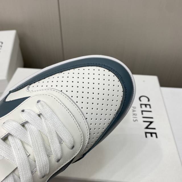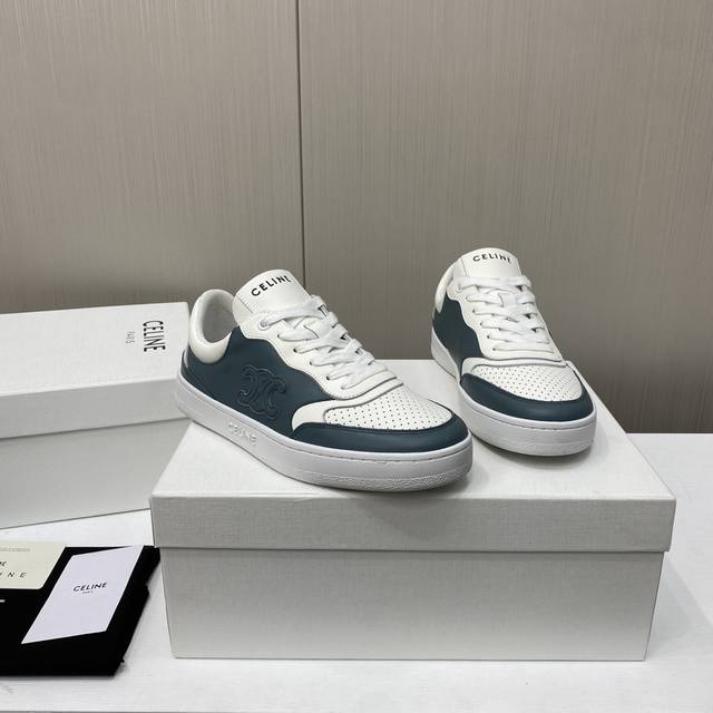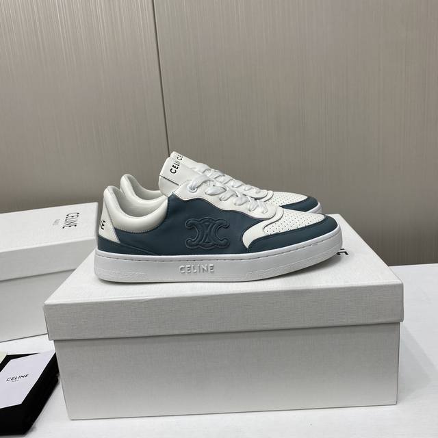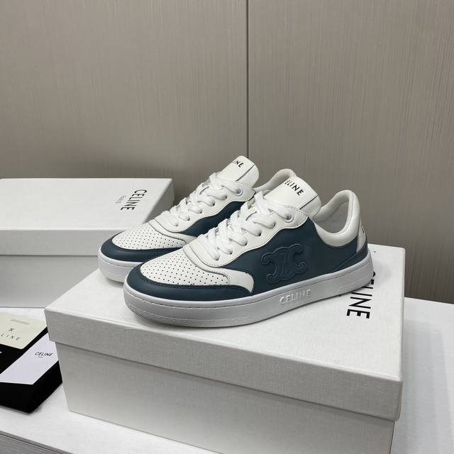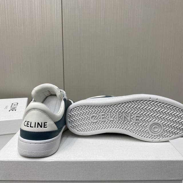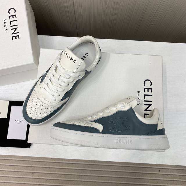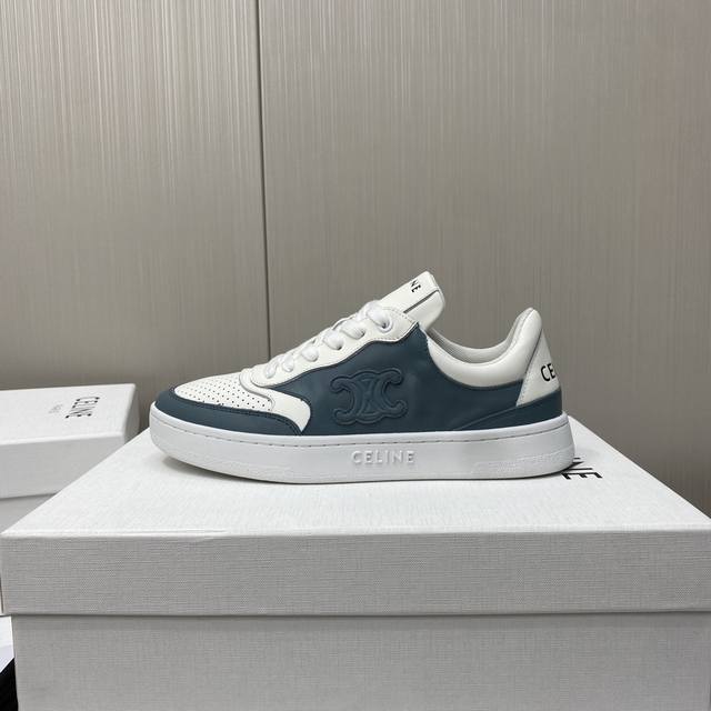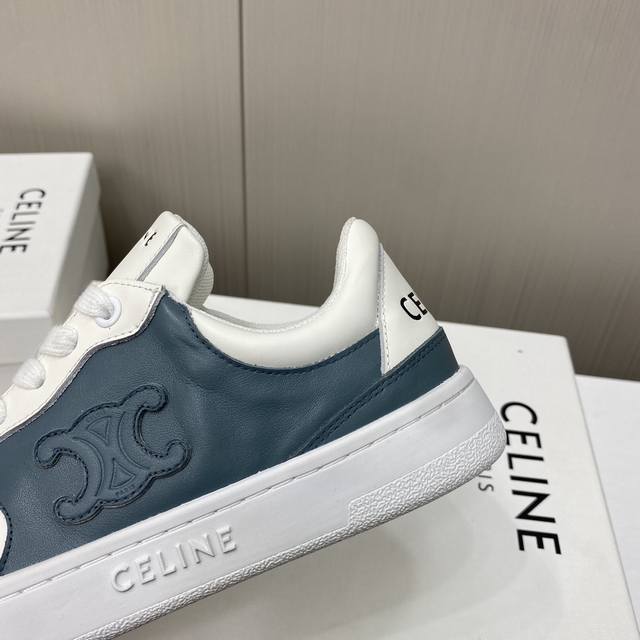 Celine赛琳 Block Triomphe牛皮革情侣运动鞋 后帮和侧面压印Celine标志厚底面包鞋