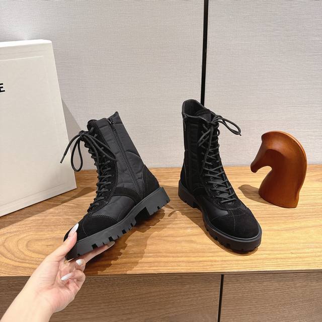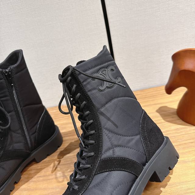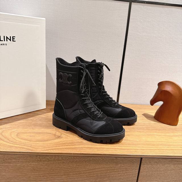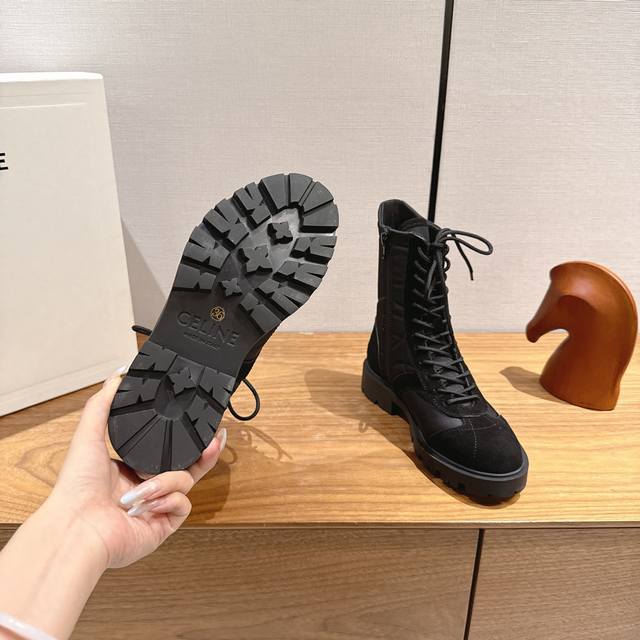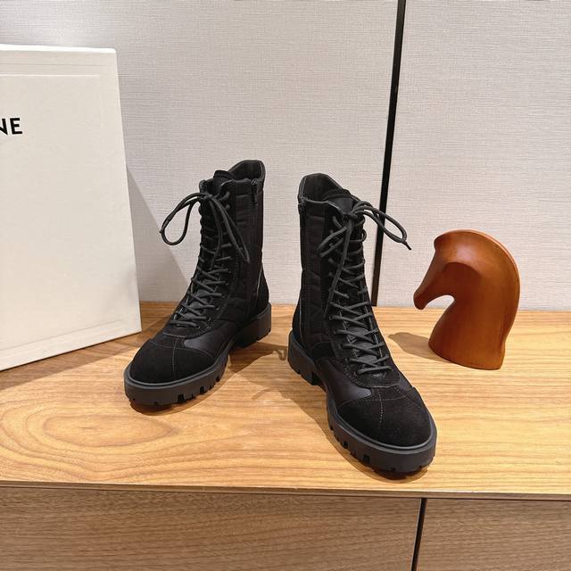 celine 赛琳 凯旋门马丁系带厚底平底粗跟粗靴!!面料头层牛皮、内里羊、标准码数35 40 41、42订做不退放