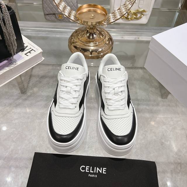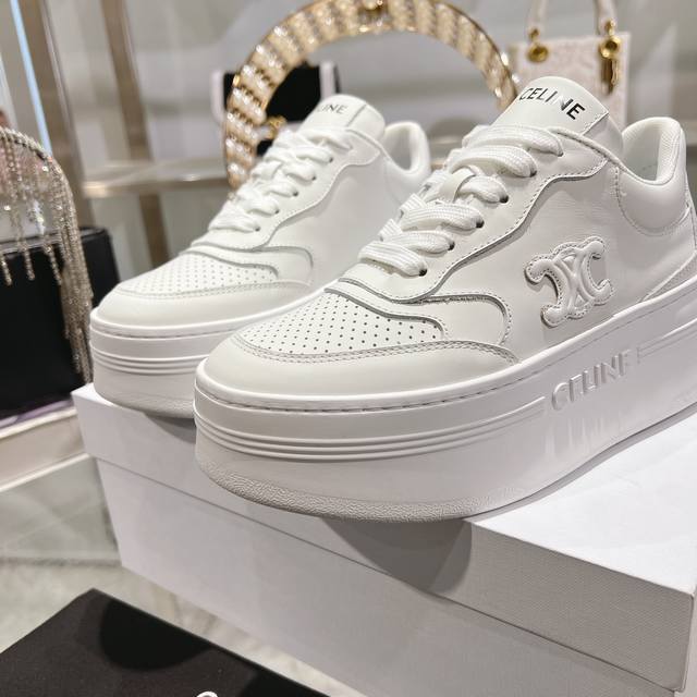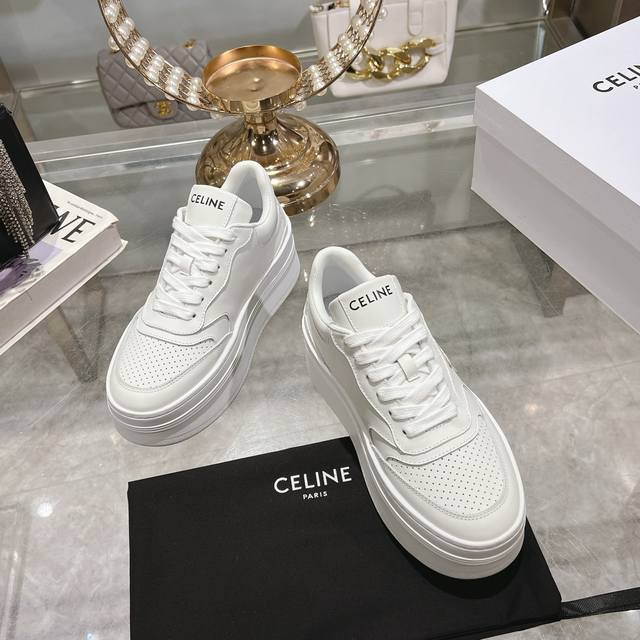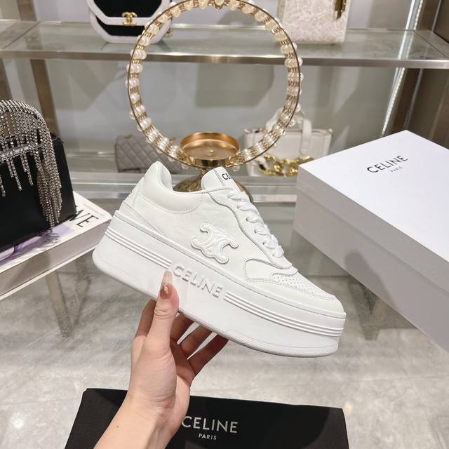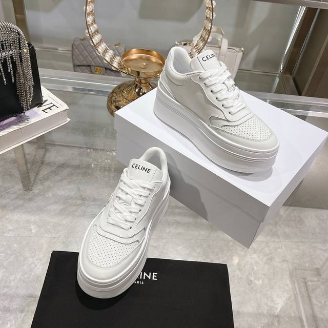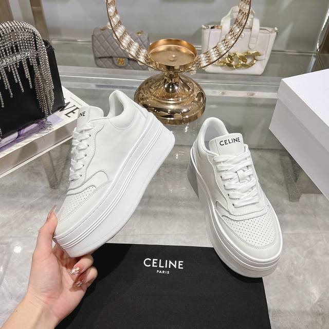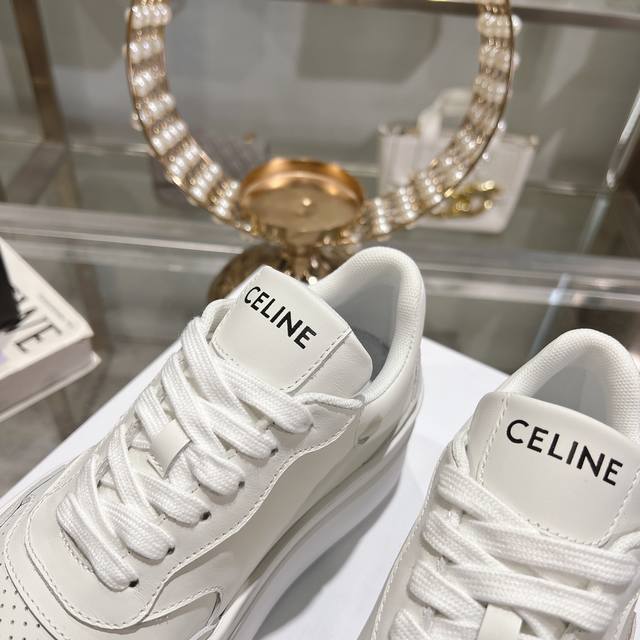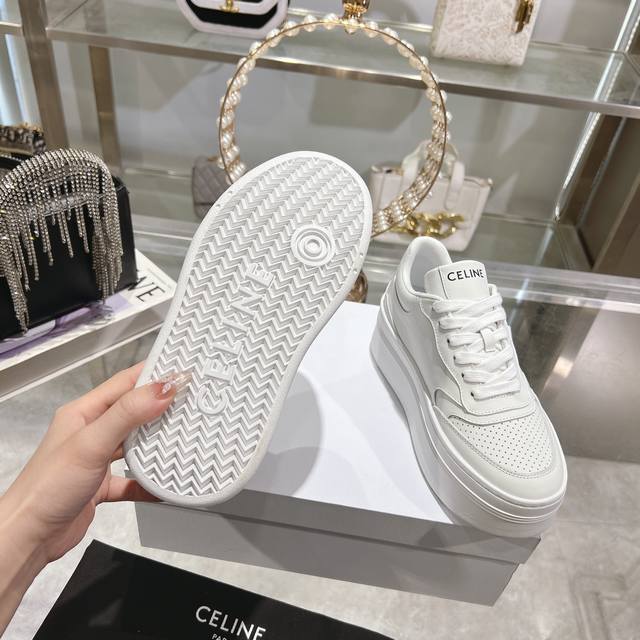 出长薄底400厚底420男款10Celine*思琳赛琳 2025Ss新款情侣款徽标系带厚底休闲鞋小白鞋 简单舒服,干净利落,**显腿细,无论是单穿还是搭配阔腿裤