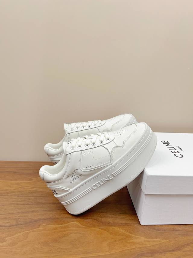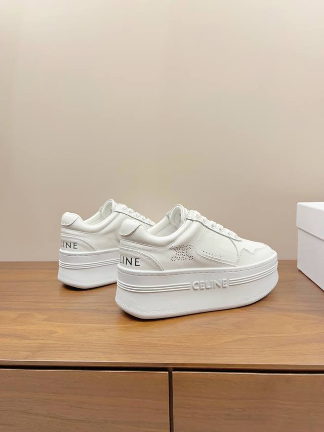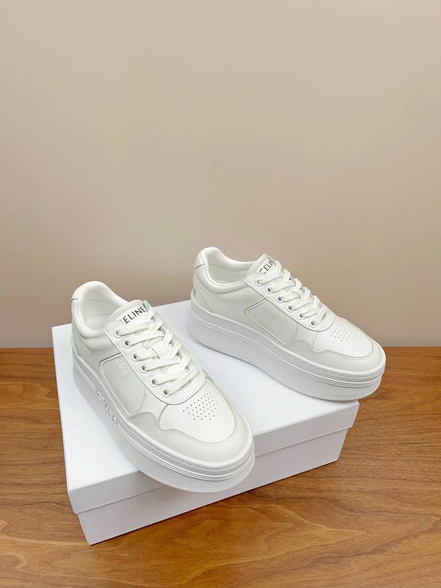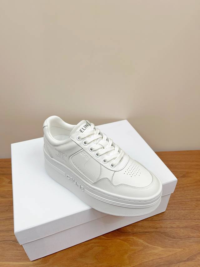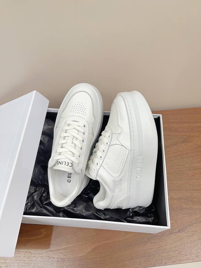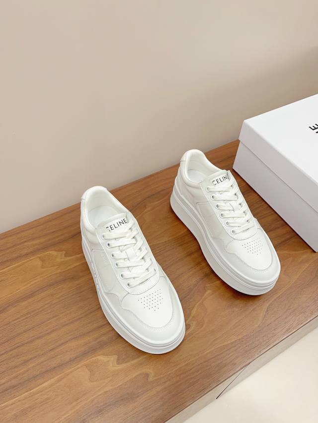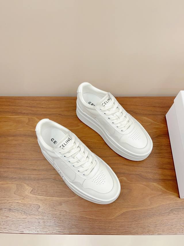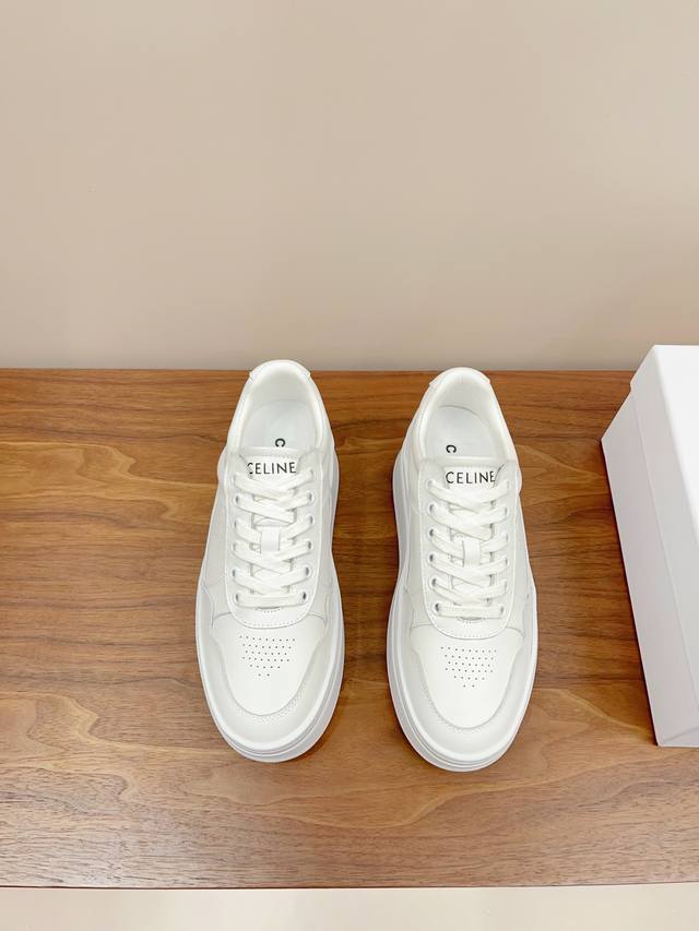 Celine赛琳 新款小白鞋,刘雯 杨幂 Lisa同款,Celine的单品华丽又实用,本身的质感符合休闲华丽这个看似矛盾的风格,而其皮件及配件从皮包,皮鞋到领带丝巾都在奢华的基础上突出实用主义。这双Celine板鞋,充满街头感的一双鞋子,鞋柜里永远都缺一双小白鞋,而今年赛琳家新款小白鞋是不二之选。与烂大街的Aj不同,Celine小白鞋有它自己独特的设计,皮革鞋面非常好打理,独出心裁别具一格的设计,侧面与后跟的Logo让他简单又不失调性,完美的一双小白鞋~~