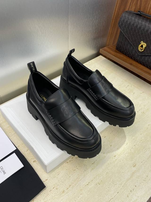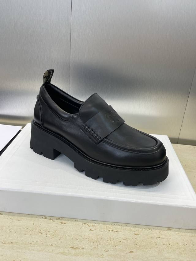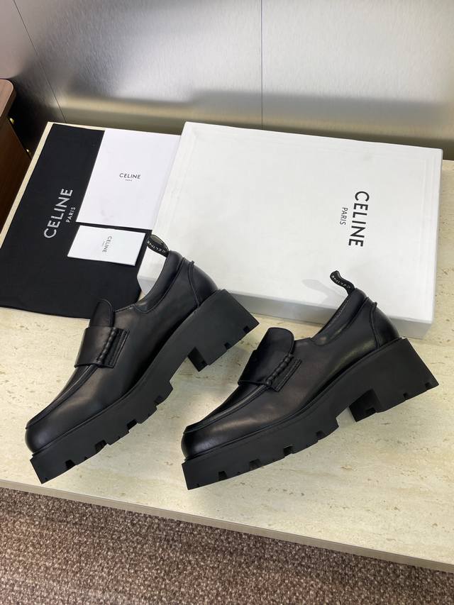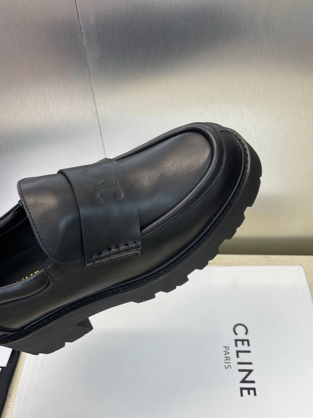 Celine 思琳2025秋冬新款系列复古乐福鞋 明星同款字母Logo厚底圆头一脚蹬女单鞋
