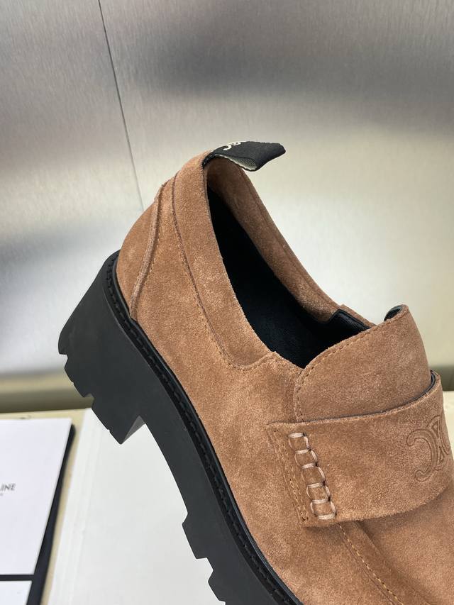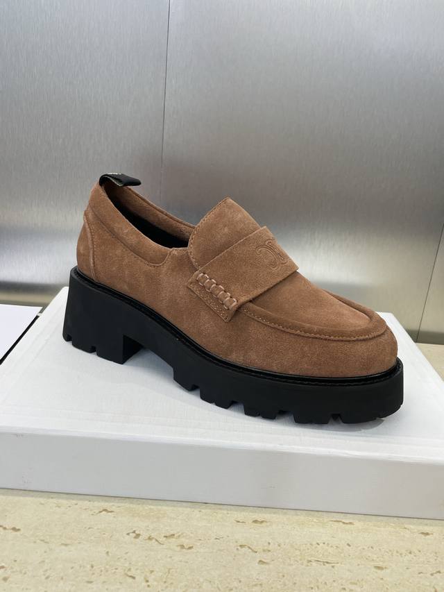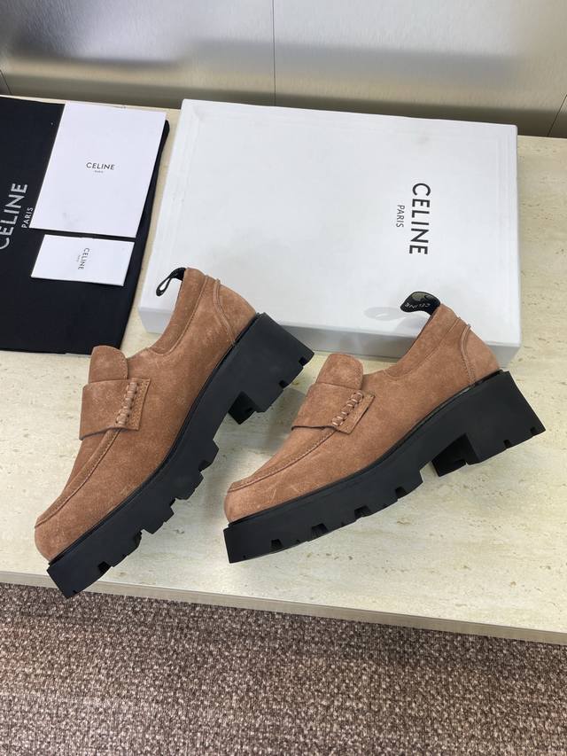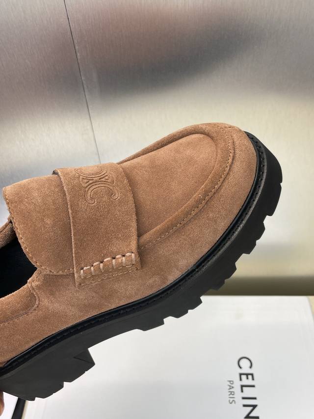 Celine 思琳2025秋冬新款系列复古乐福鞋 明星同款字母Logo厚底圆头一脚蹬女单鞋