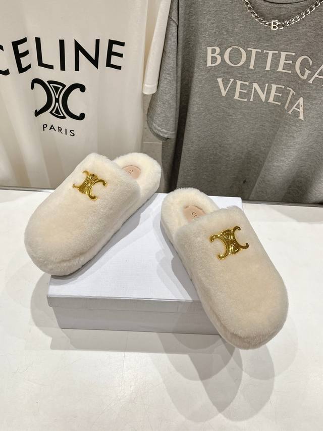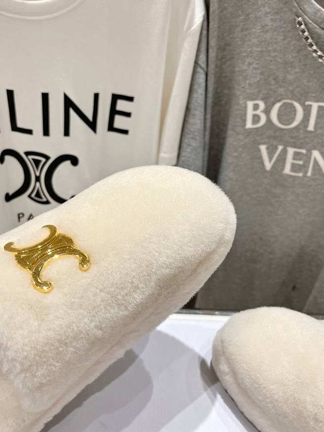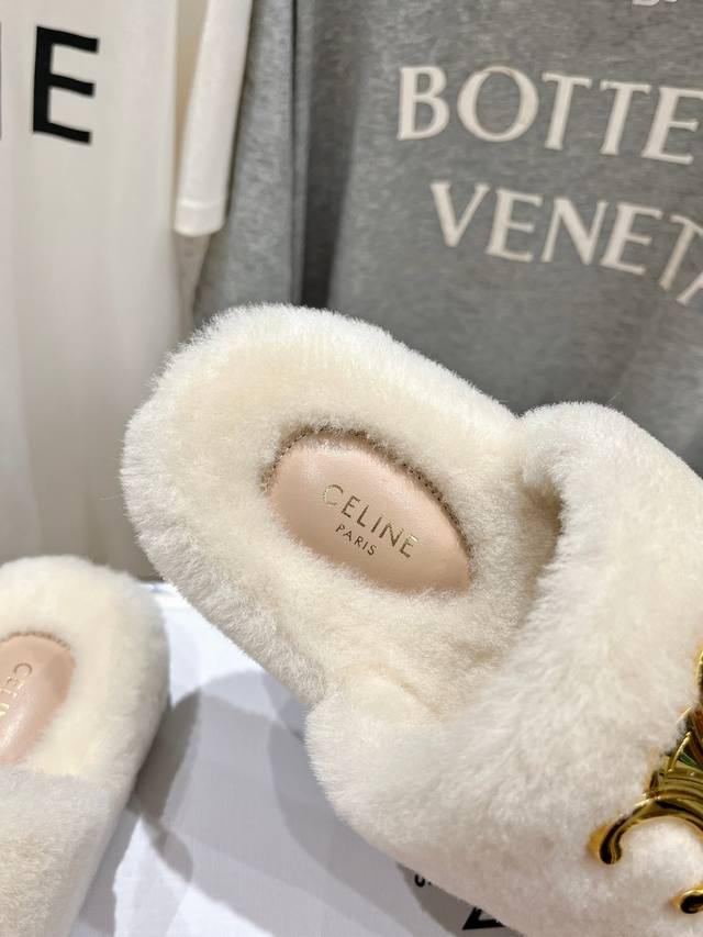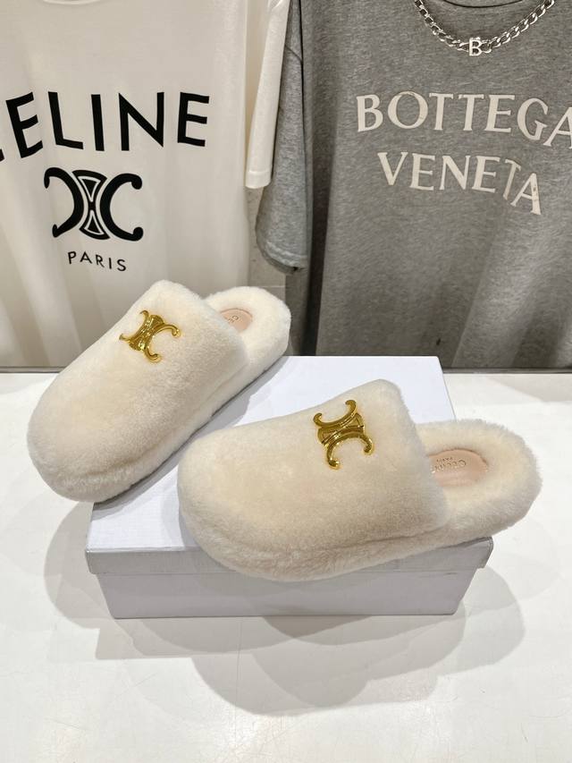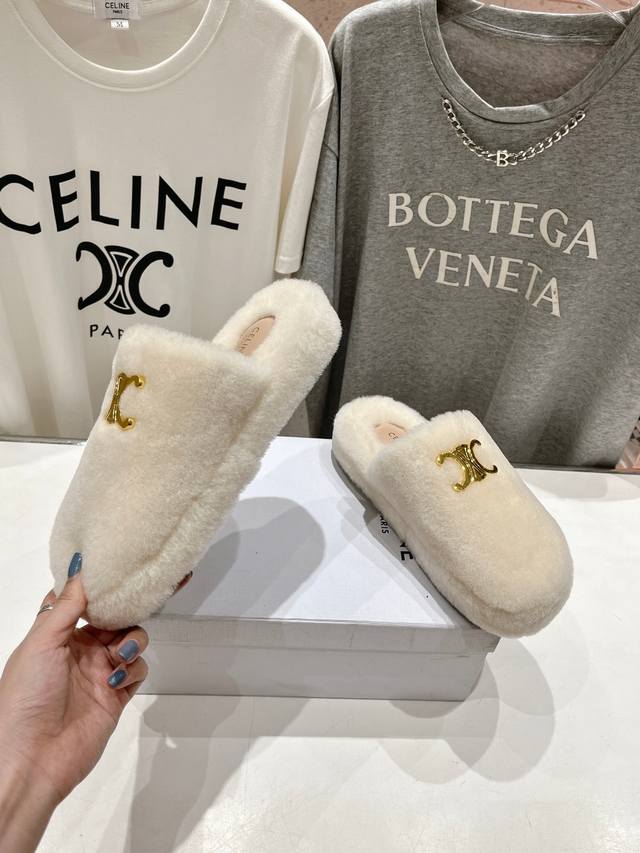 Celine 塞琳 2025Ss新款半包勃肯羊毛拖鞋