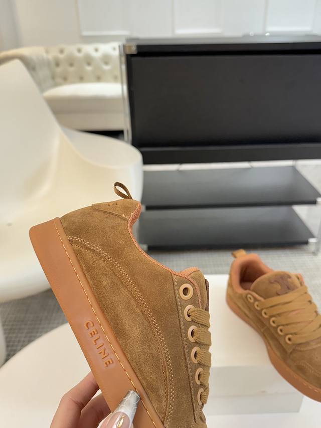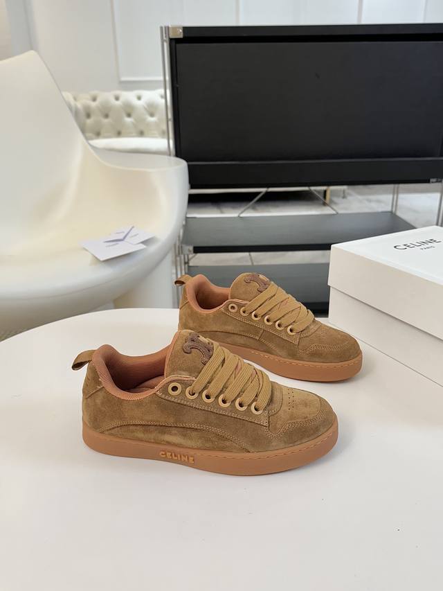 Celine思琳最新春夏走秀款情侣面包鞋 这一季运动休闲鞋无论从楦型的轮廓隔板的拼接都让人耳目一新、前后品牌logo相呼应、大底边位明显celine字母点缀、无不彰显品牌元素、鞋面高光丝牛绒、Tpu私模大底 码数:女35-41 男33-45 女41男45定做不退换