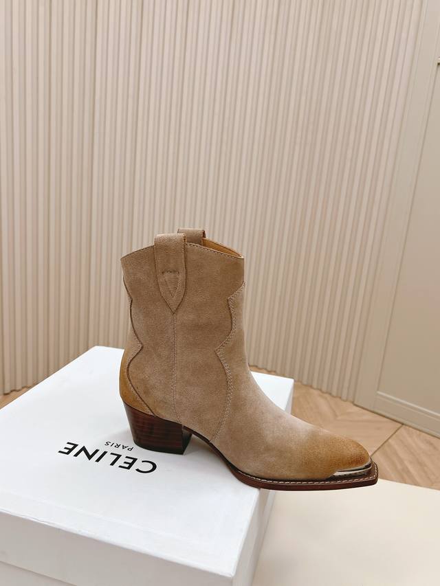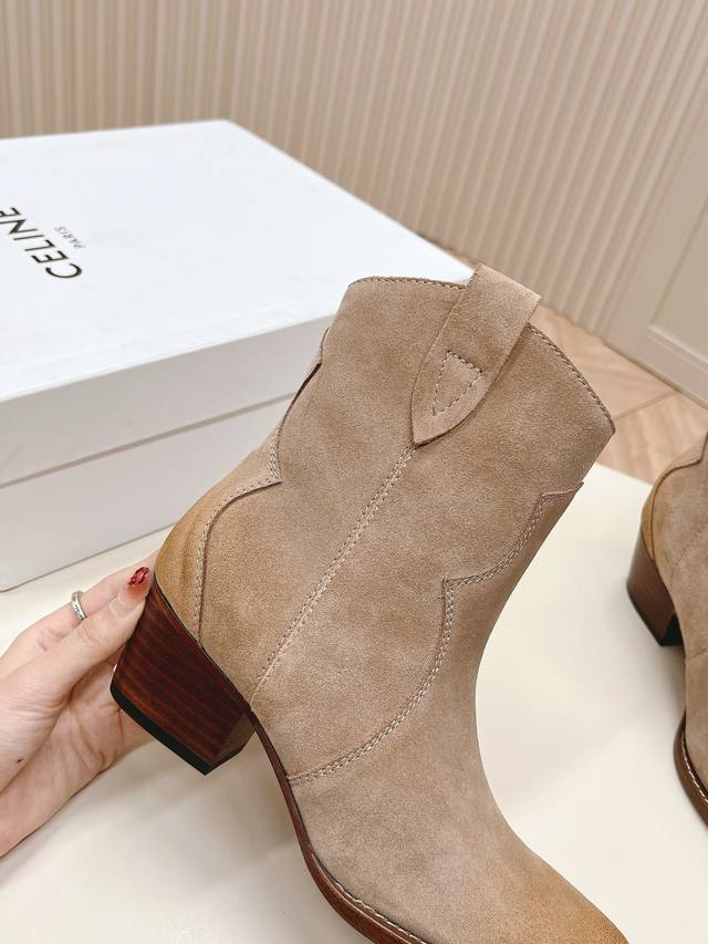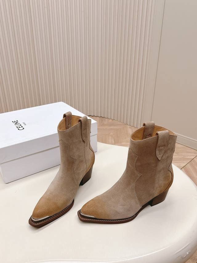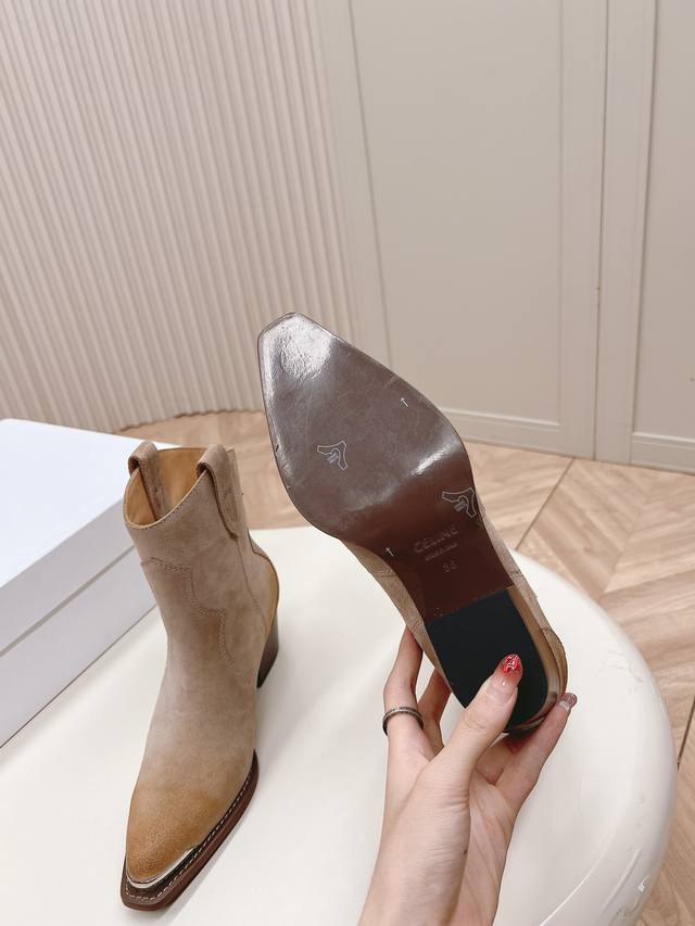 皮面 牛猄面 ,Celine专柜最新时装靴、走秀款时尚博主同款 早秋力推单品!复古欧美风格 炸街必备单品 凯旋门logo点缀 非常高端有气质 四季可穿的短靴 鞋