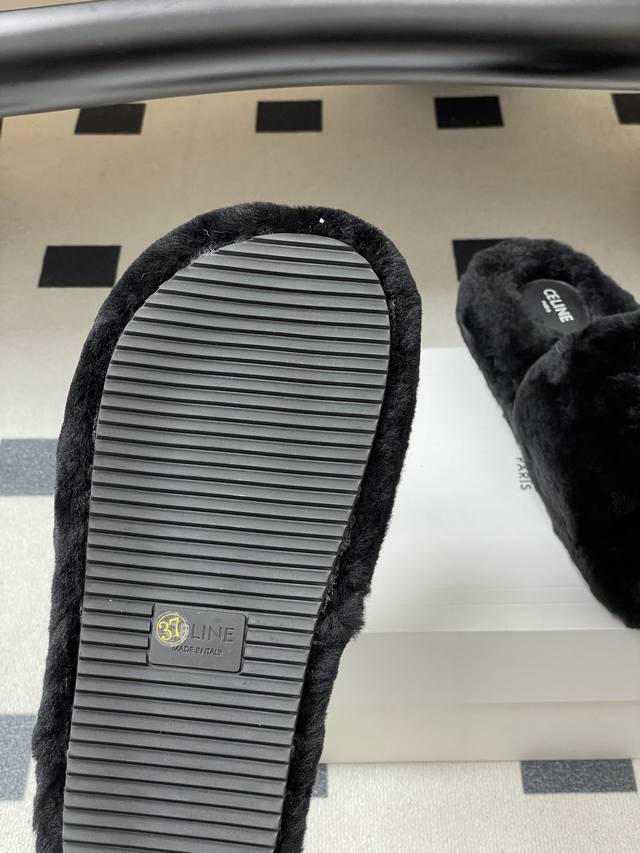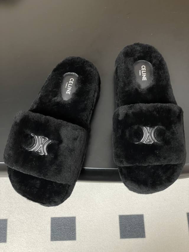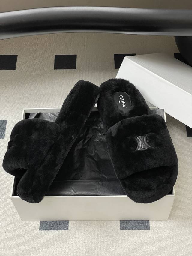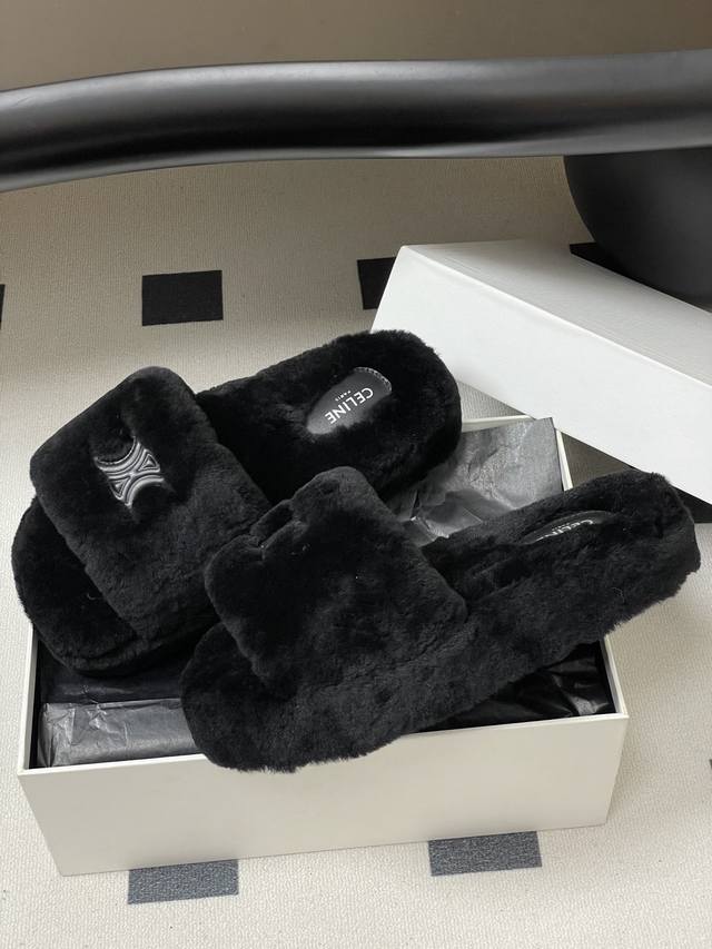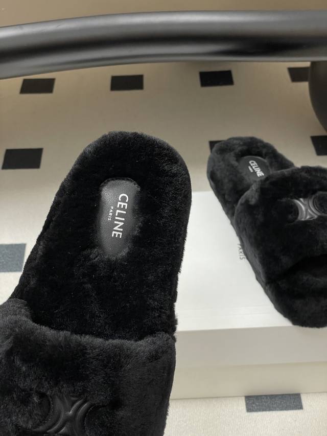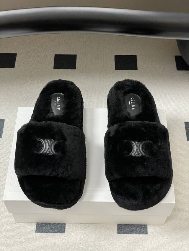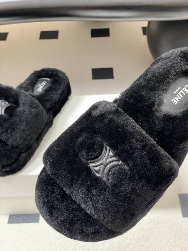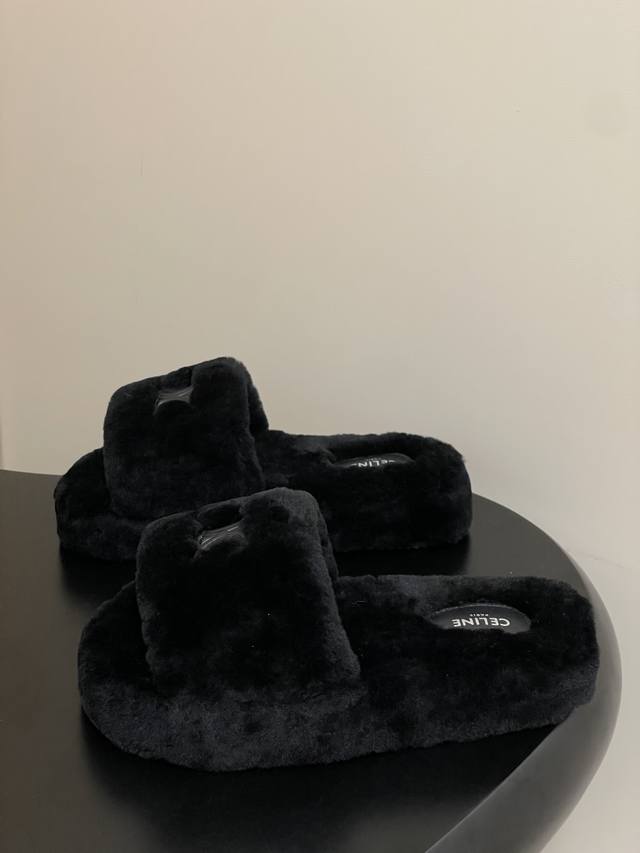 25Fw秋冬新款 Celine 赛琳 凯旋门厚底毛拖鞋一脚蹬羊毛拖鞋