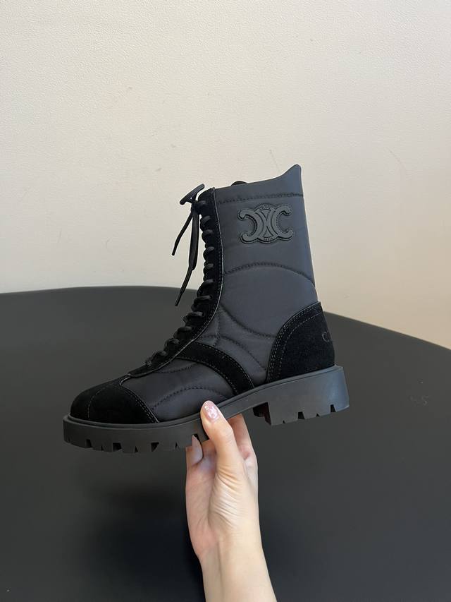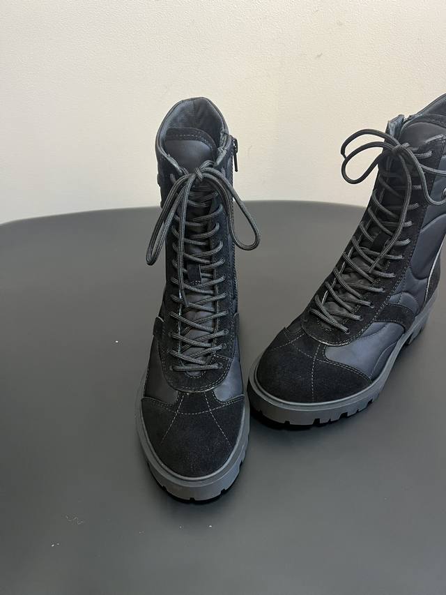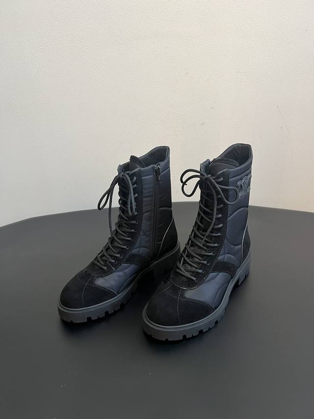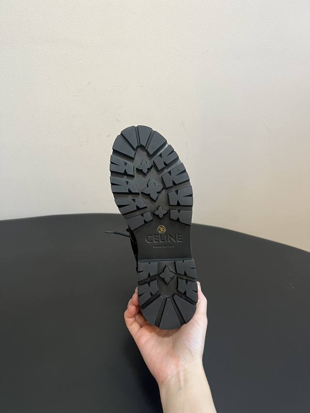 中筒靴型,鞋带可调节,能贴合不同脚型;厚底设计,兼具增高与修饰腿型的效果,让腿部线条更显纤细。橡胶大底,抓地力强且耐磨,日常穿着舒适又百搭。