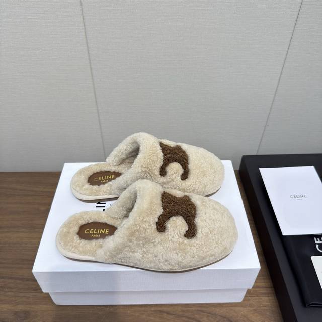 顶级版本 Celine*塞林2025Ss 新品羊毛拖鞋 毛茸茸的羊毛是选用欧洲进口A级羊毛