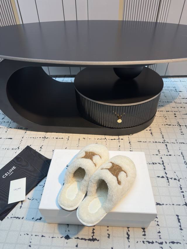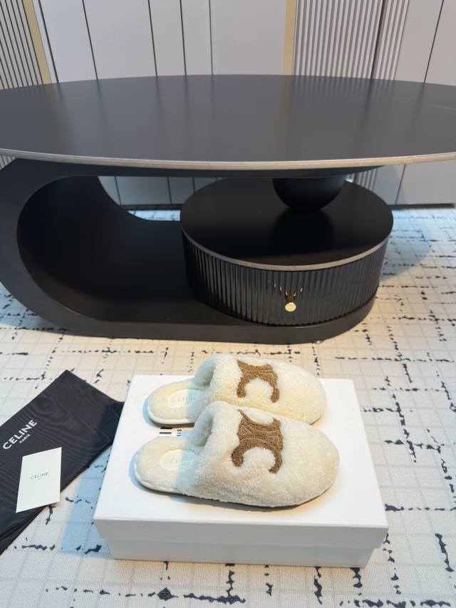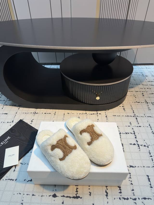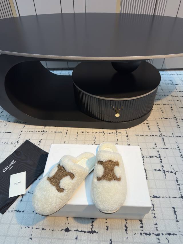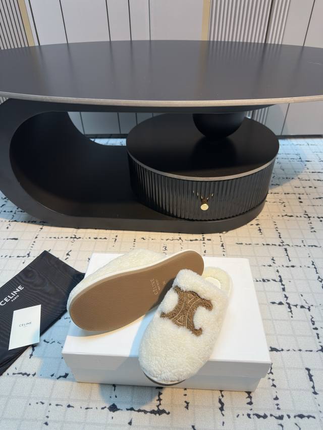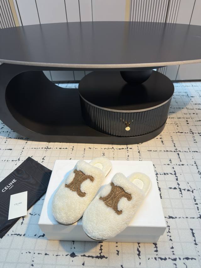 celin*塞琳 25Ss 新品 一脚蹬羊毛拖鞋