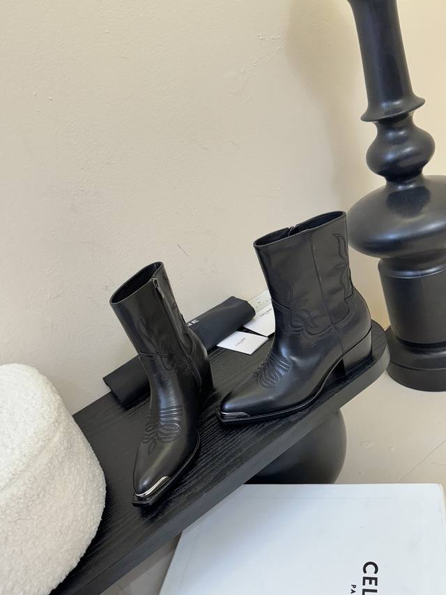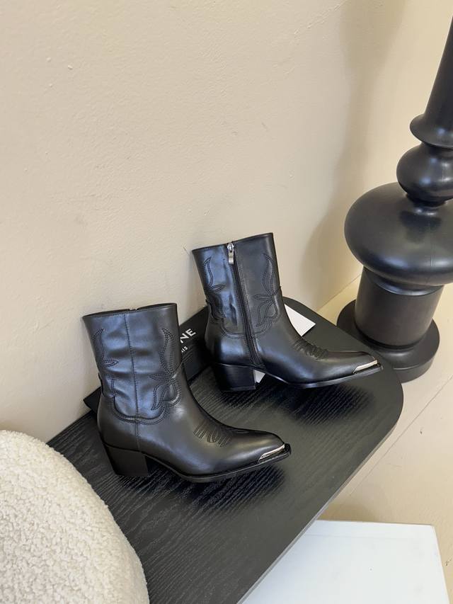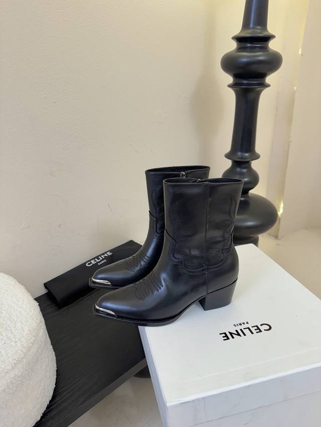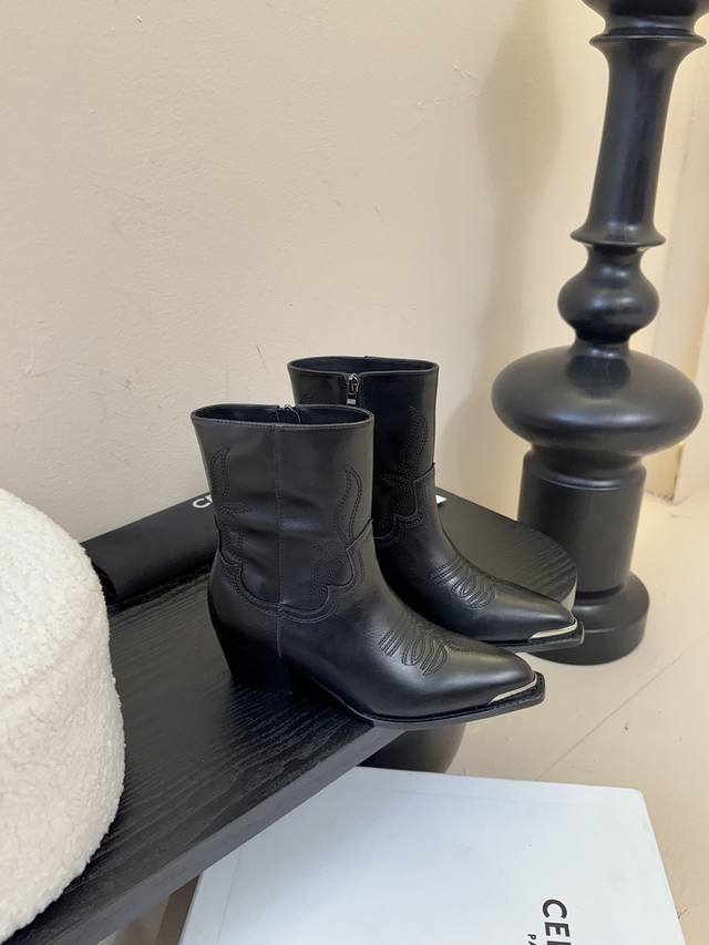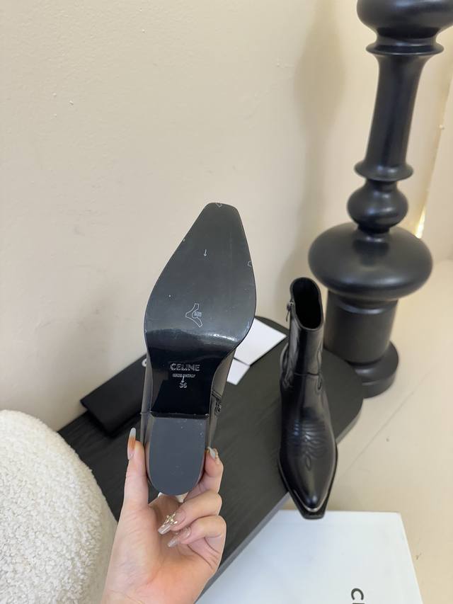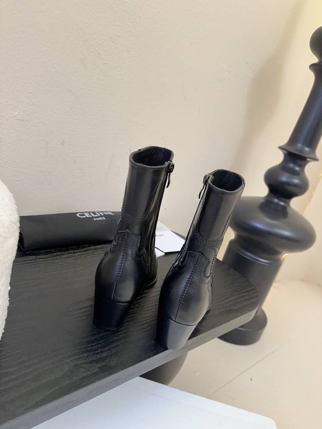 Celine思琳专柜秋冬最新款复古时装短靴 超多明星时尚博主同款 早秋力推单品!复古欧美风格 炸街必备单品 凯旋门Logo点缀 非常高端有气质 四季可穿的短靴、