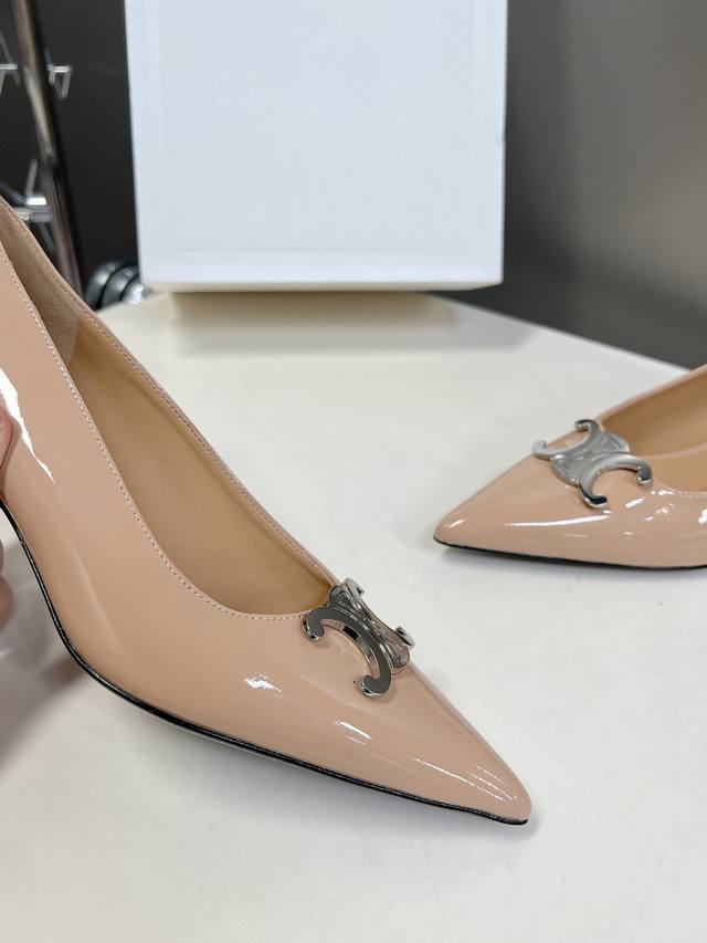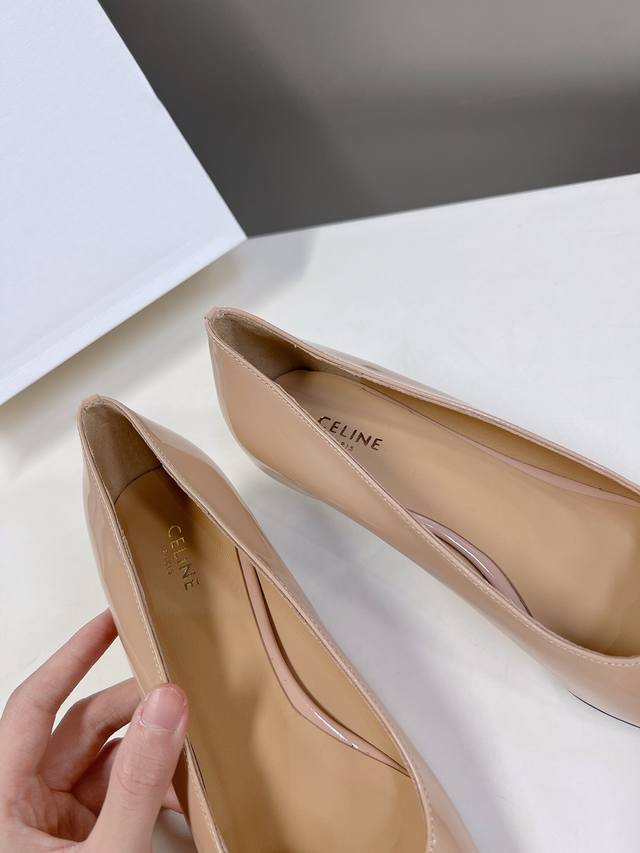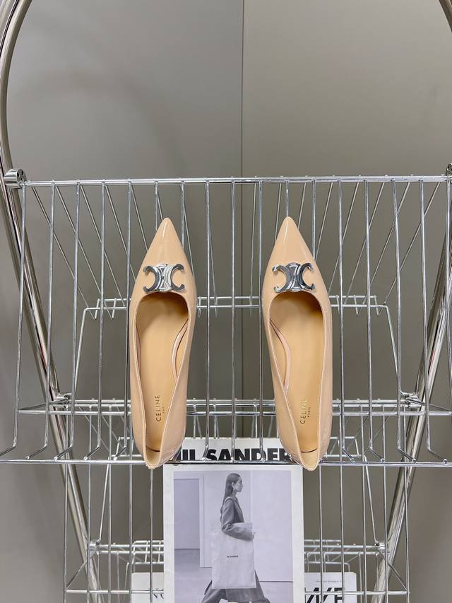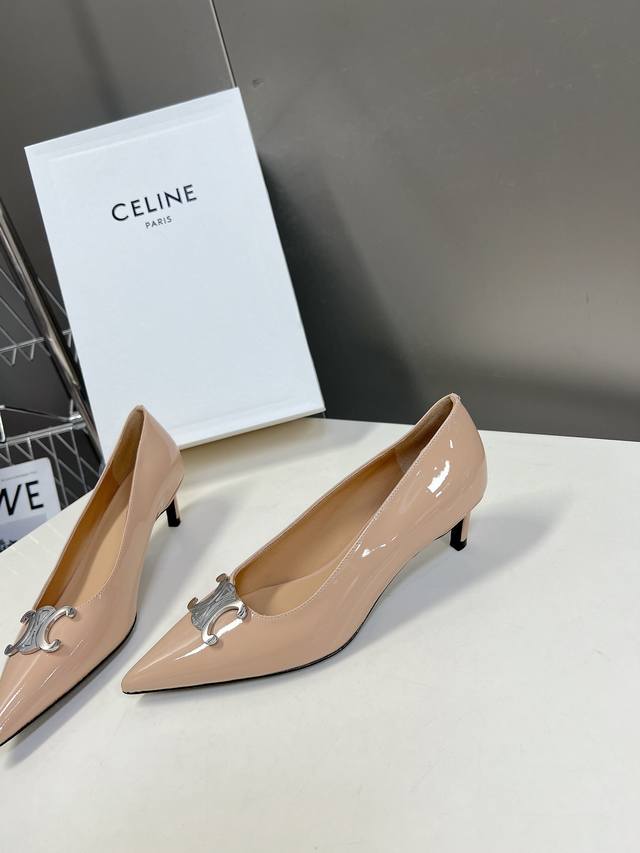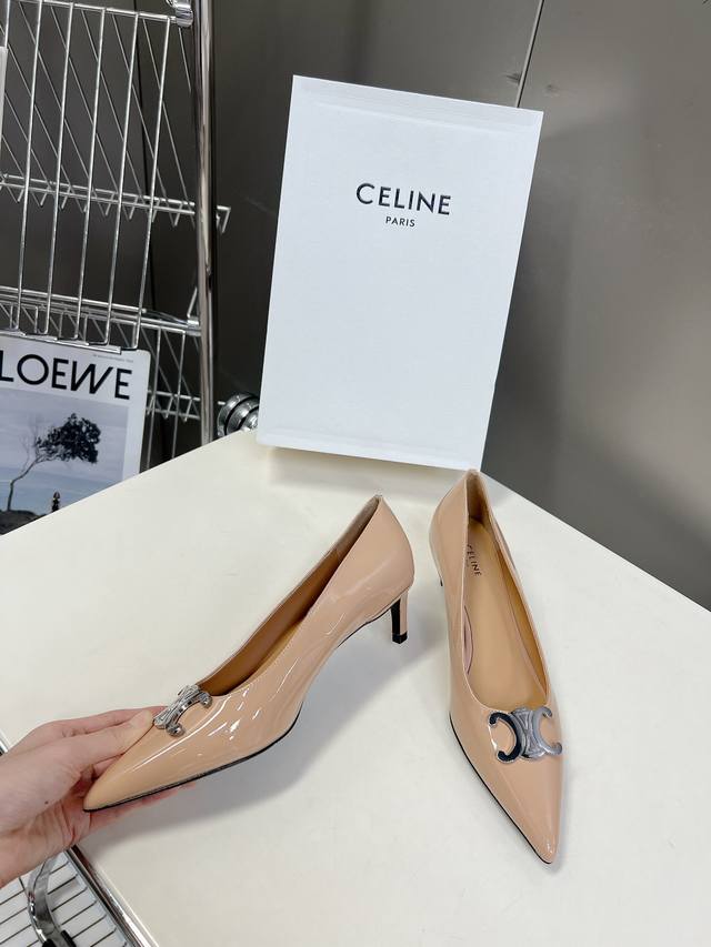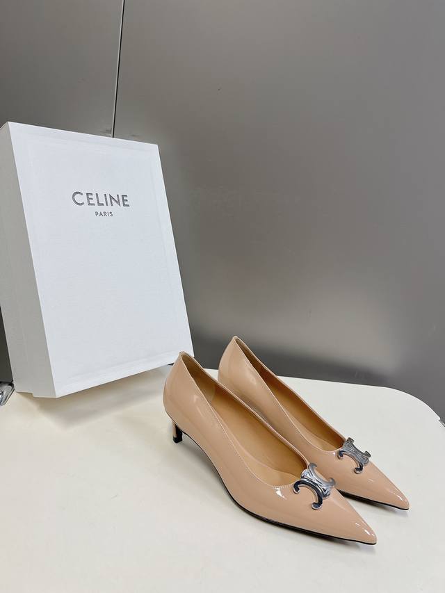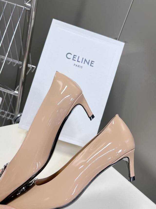 / Celine思琳春夏走秀款~高版本的,非市场通货版本,鞋底定型,垫脚下乳胶垫形体都是不一样的!银色凯旋门扣件,复古时髦 小尖头搭配 刚刚好的小猫跟,舒适优雅小牛