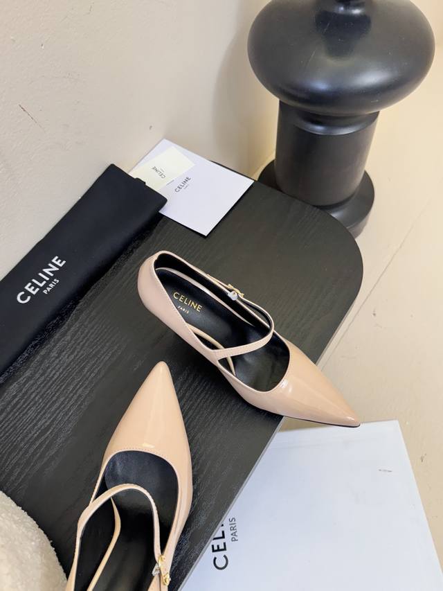 Celine 新款凯旋门尖头猫跟凉鞋 高级优雅上脚显瘦得来,超有气质~ 5Cm的小猫跟轻松无压力还一点都不挑人 鞋面:开边珠牛皮...