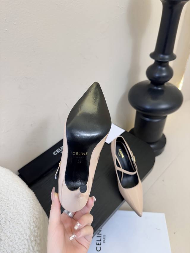 Celine思琳秋冬凯旋门时装高跟鞋 柔美的露脚设计, 上脚真的超级显瘦超级美 C家特定的精致凯旋门Logo 好看到爆 鞋面:原版漆牛皮 内里 垫脚:采用顶级混