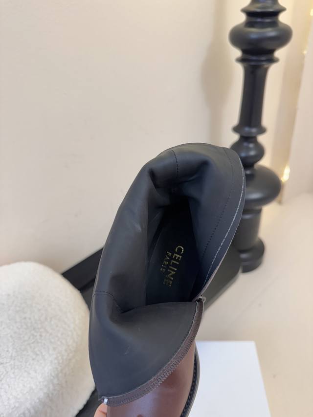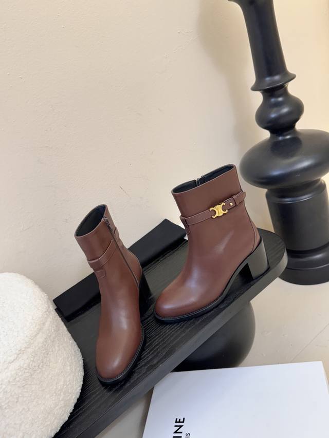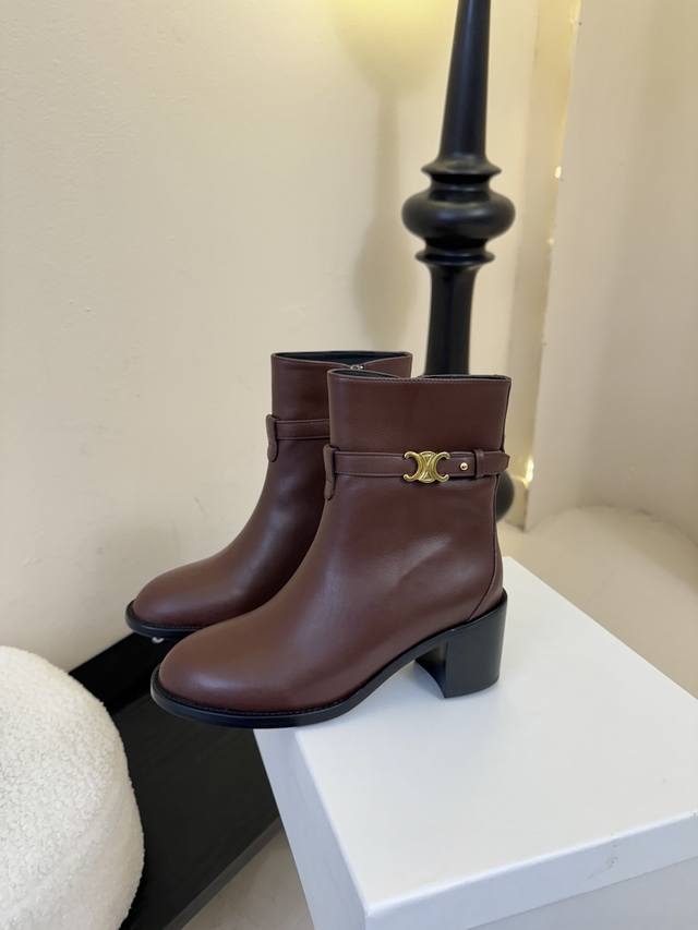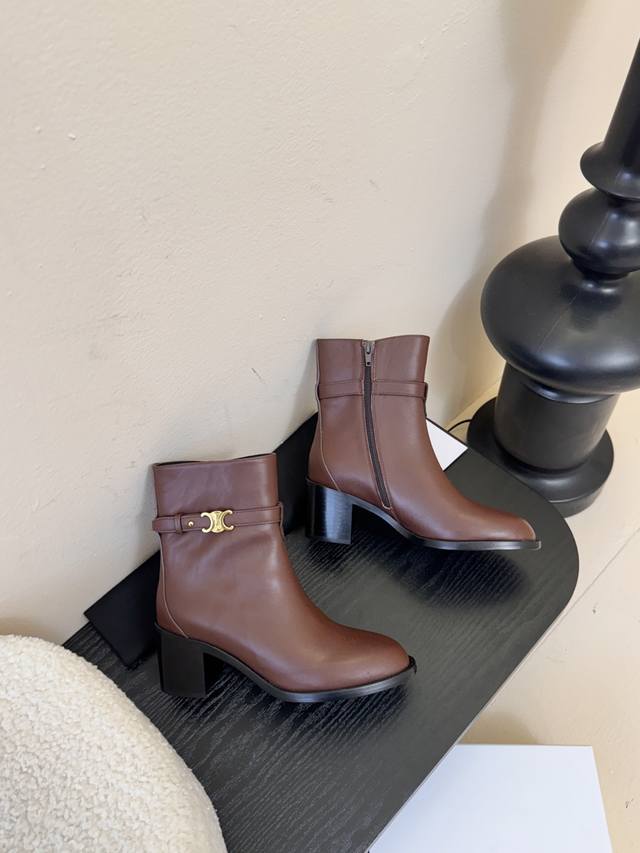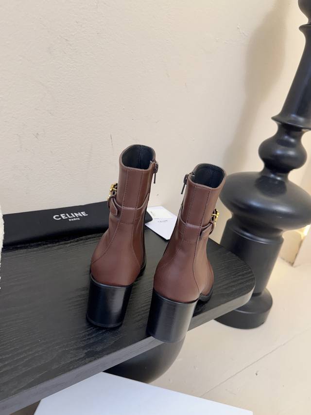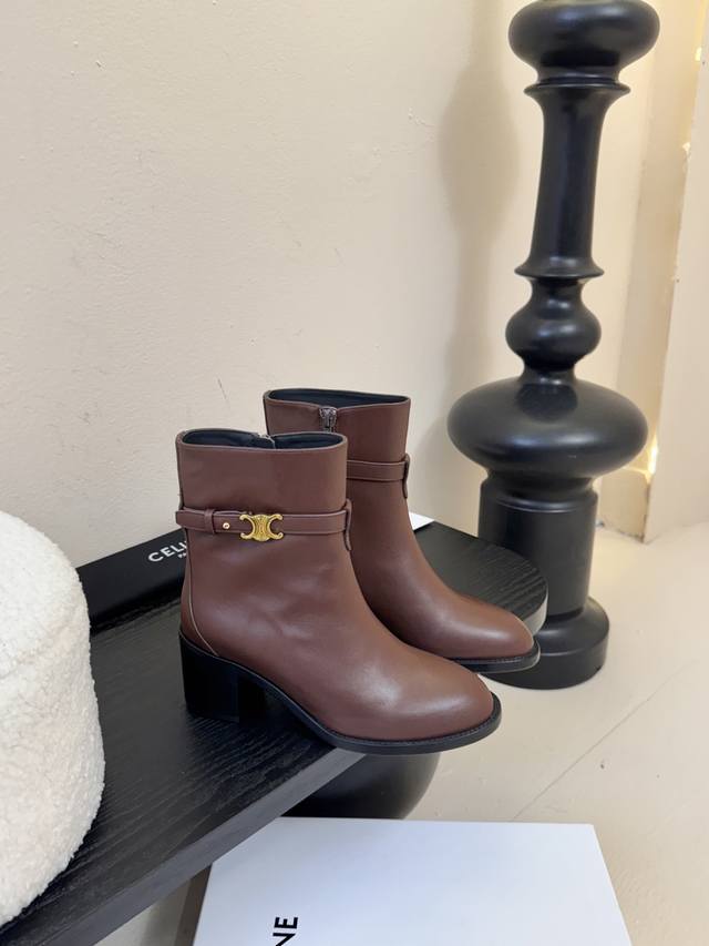 Celine思琳秋冬最新款复古凯旋门粗跟 短靴