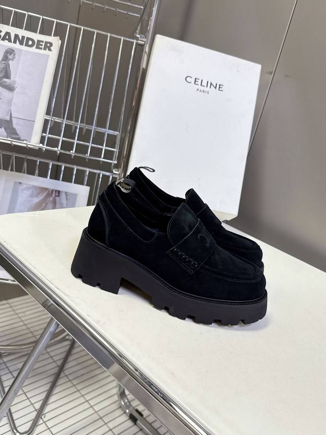 Celine思琳秋冬最新走秀款Lisa同款厚底乐福鞋 好多明星网红上脚 无敌显瘦 上脚超级好看百搭 进口意大利小牛皮皮质柔软 原版定制五金扣 鞋底厚5Cm左右、增高显腿细牛皮内里 真皮沿条 原版开模大底 全套包装 Size:35~40