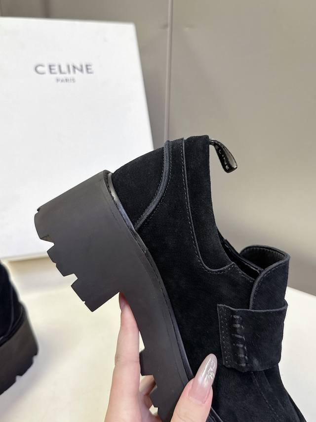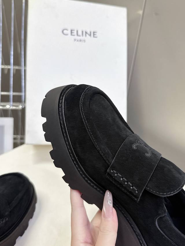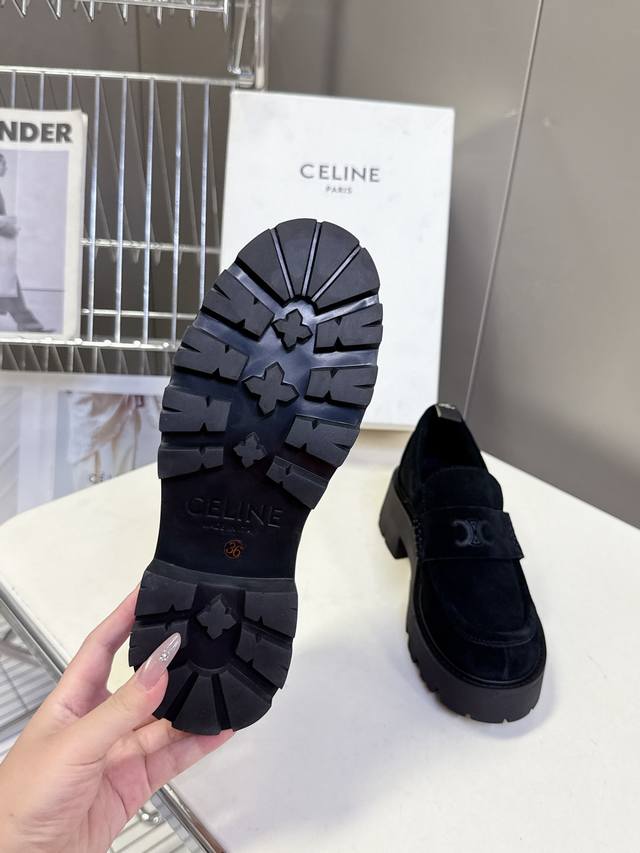 Celine思琳秋冬最新走秀款Lisa同款厚底乐福鞋 好多明星网红上脚 无敌显瘦 上脚超级好看百搭 进口意大利小牛皮皮质柔软 原版定制五金扣 鞋底厚5Cm左右、
