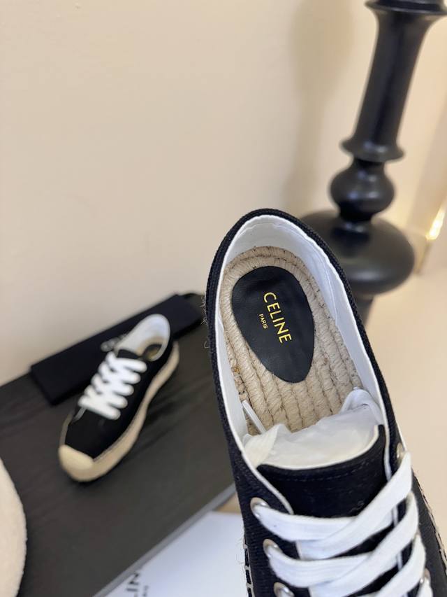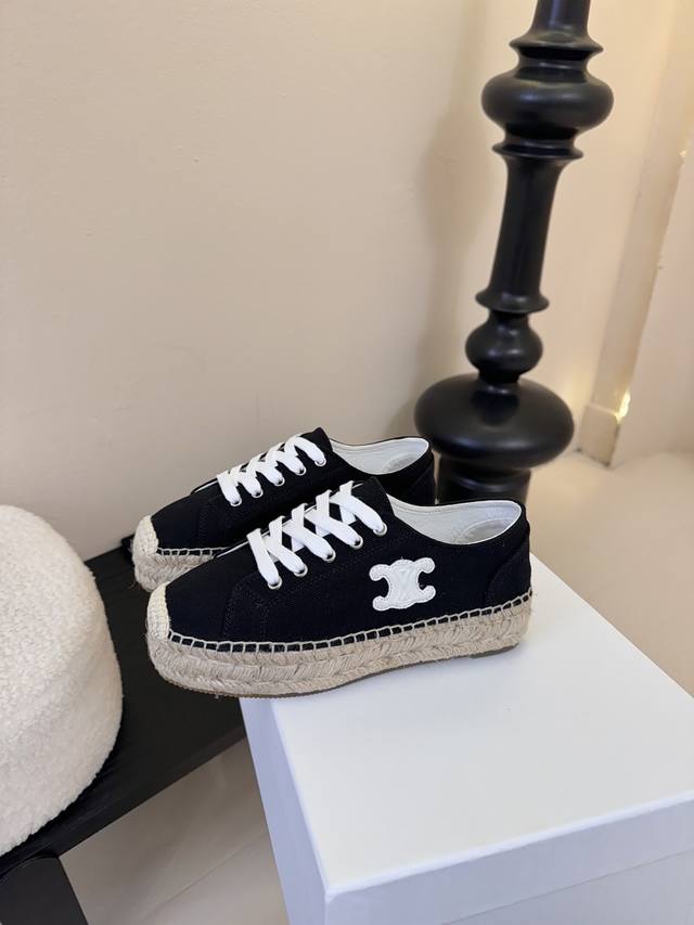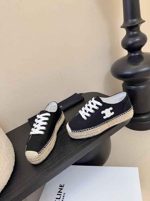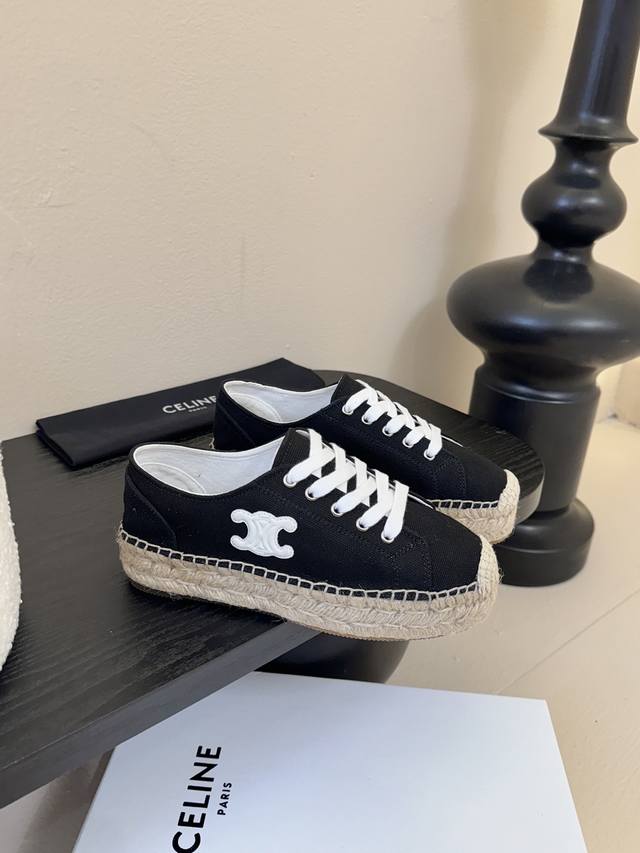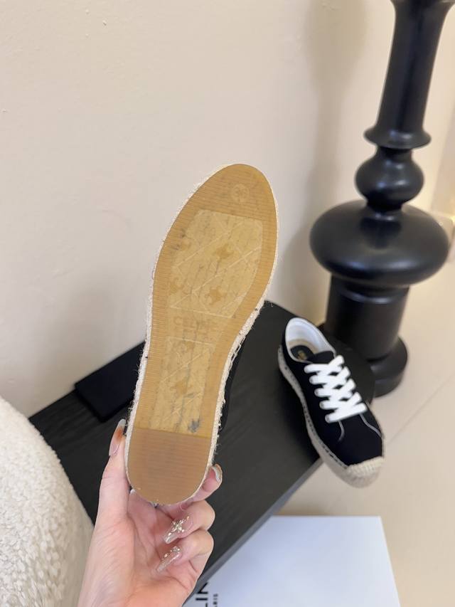 鞋后帮和侧面压印Celine标志厚底面包鞋2025春夏新款女凯旋门徽标系带356853简单舒服,干净利落,增高显腿细,无论是单穿还是搭配阔腿裤,高街又复古一起来做Celine女孩