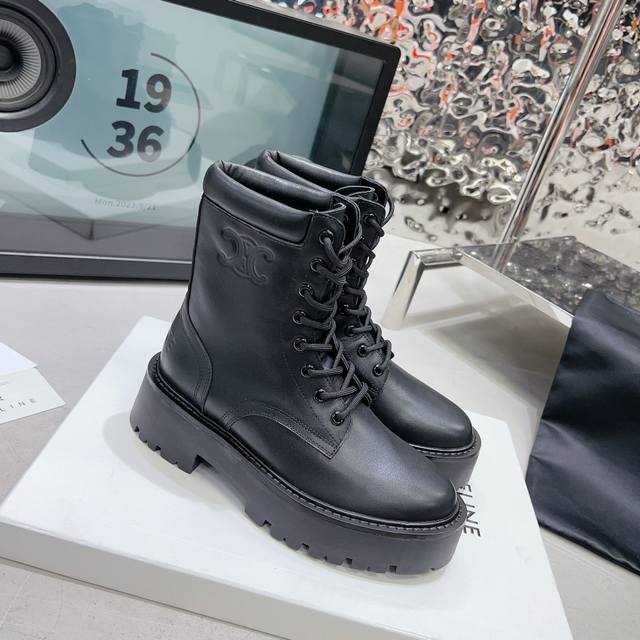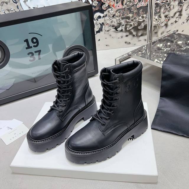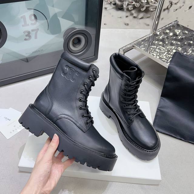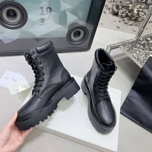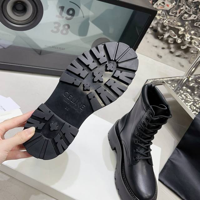 Celine新款马丁短靴 ,系带英伦风马丁靴短夏天也可以穿的马丁靴,舒适透气简约耐看不过时是时尚圈永不退潮的经典所在,复古的英伦风格,让你穿出不一样的气质,面料