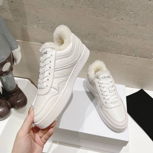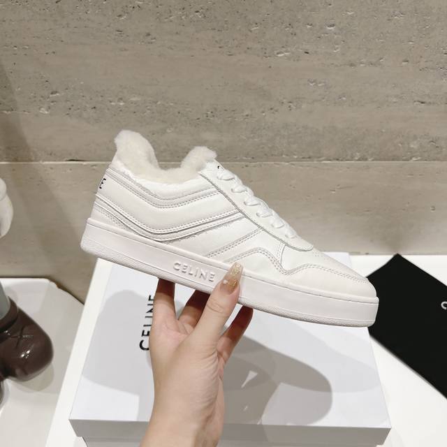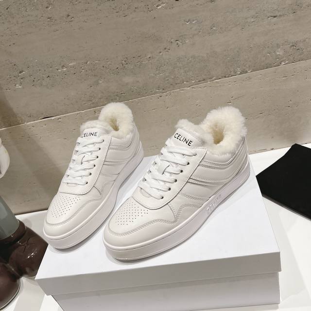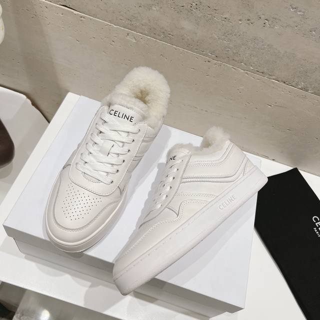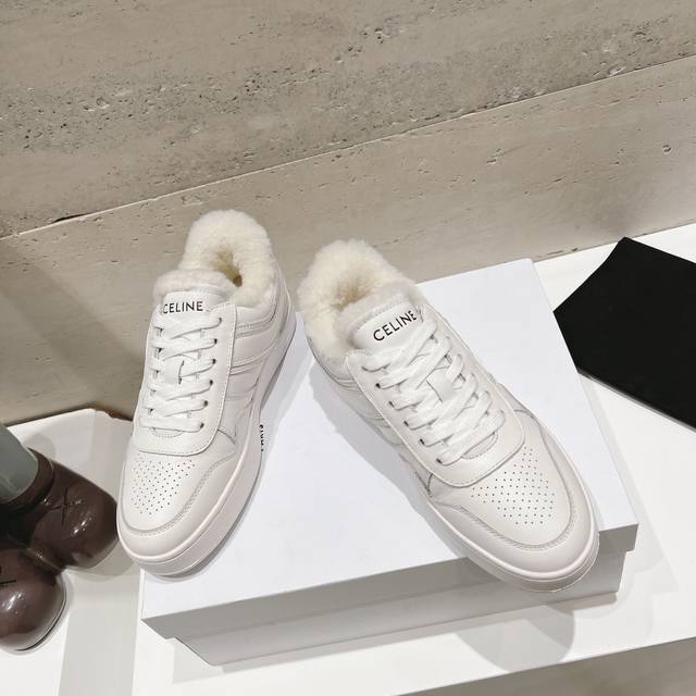 Celine赛琳厚底羊毛款小白鞋 这个秋冬不太冷系列保暖舒适 时尚百搭 任何衣物都能轻松搭配 进口牛皮鞋面 真羊毛内里垫脚 原版一致大底女码35-39 女40可定 不退换