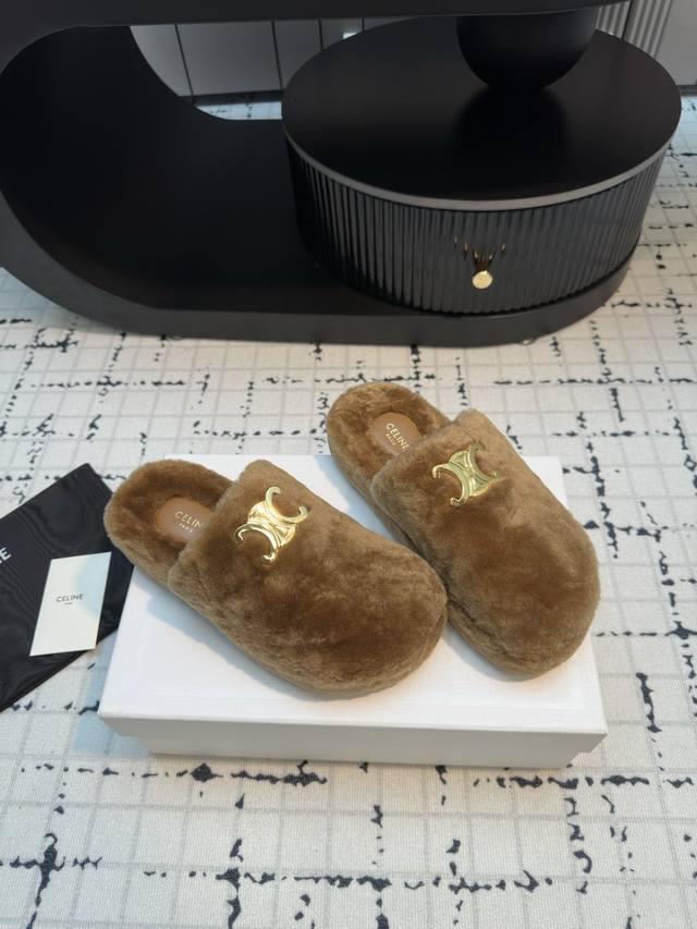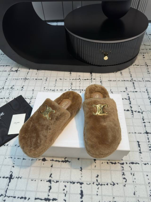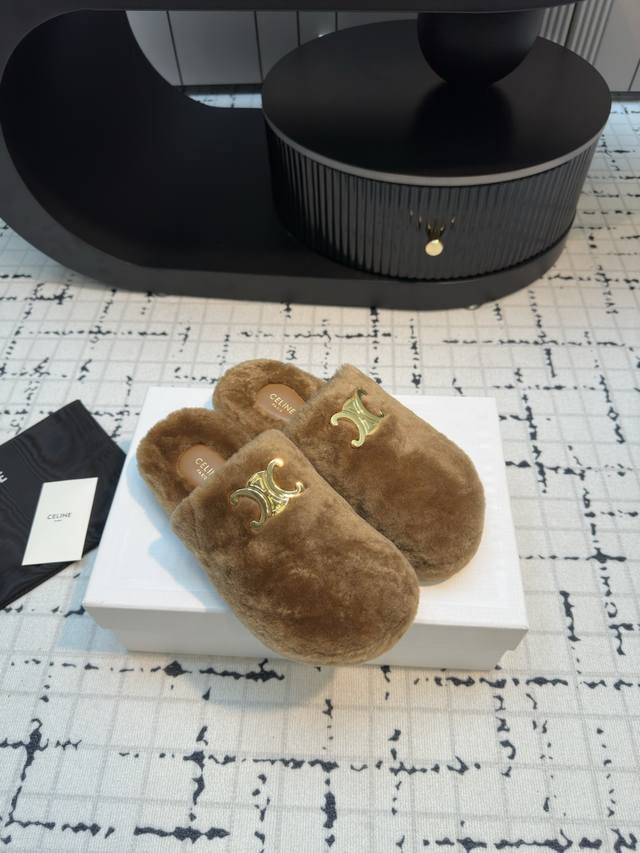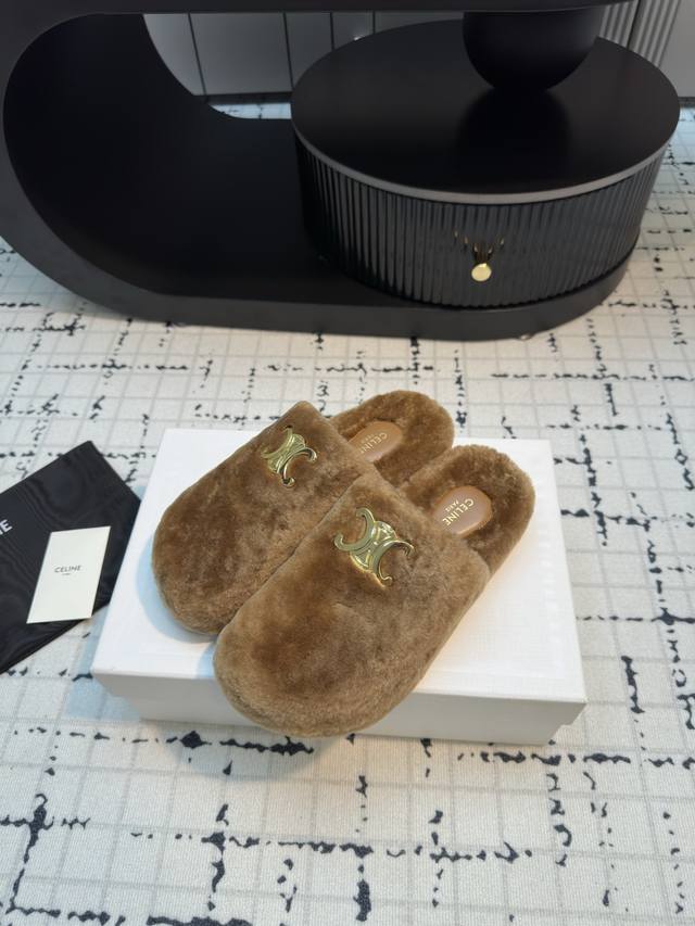 celine 塞琳 2025 秋冬新品包头羊毛拖鞋