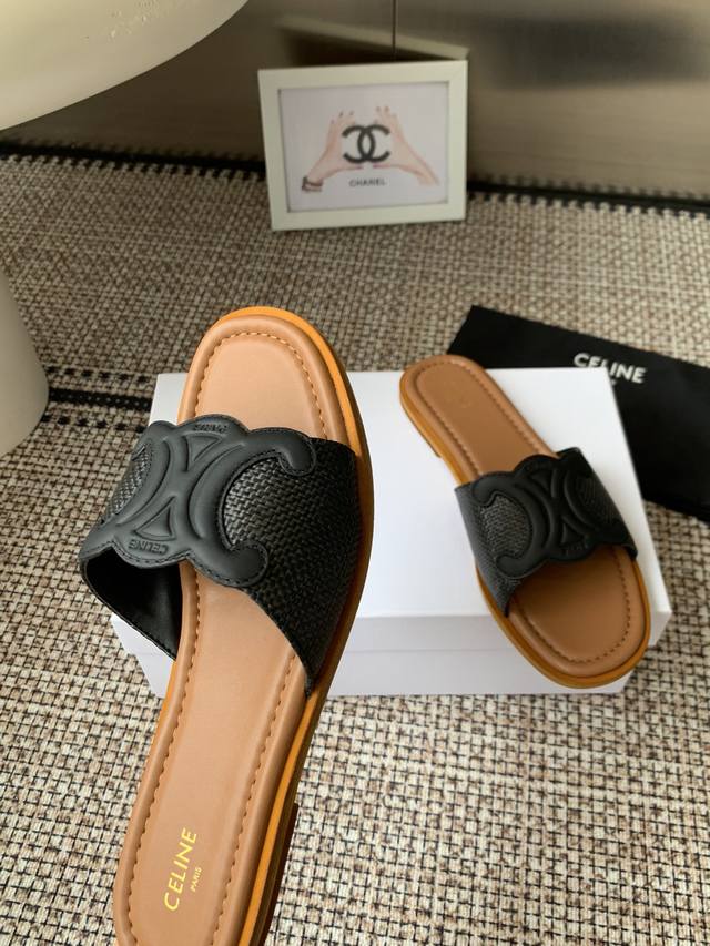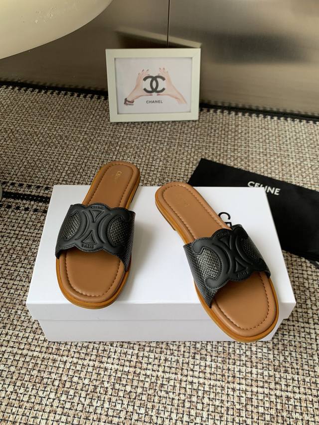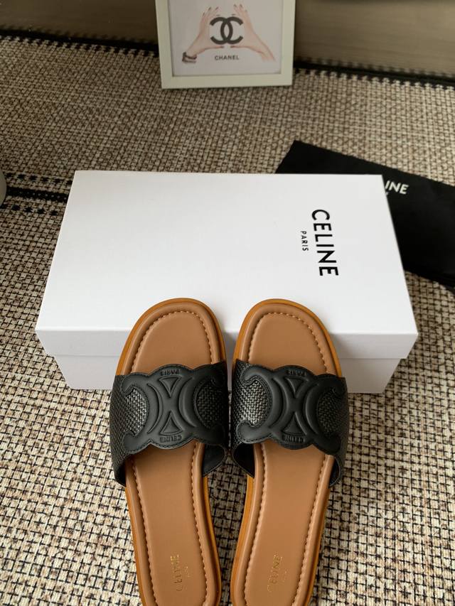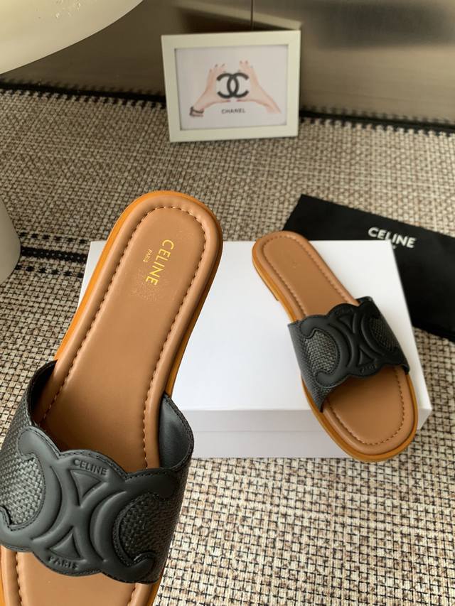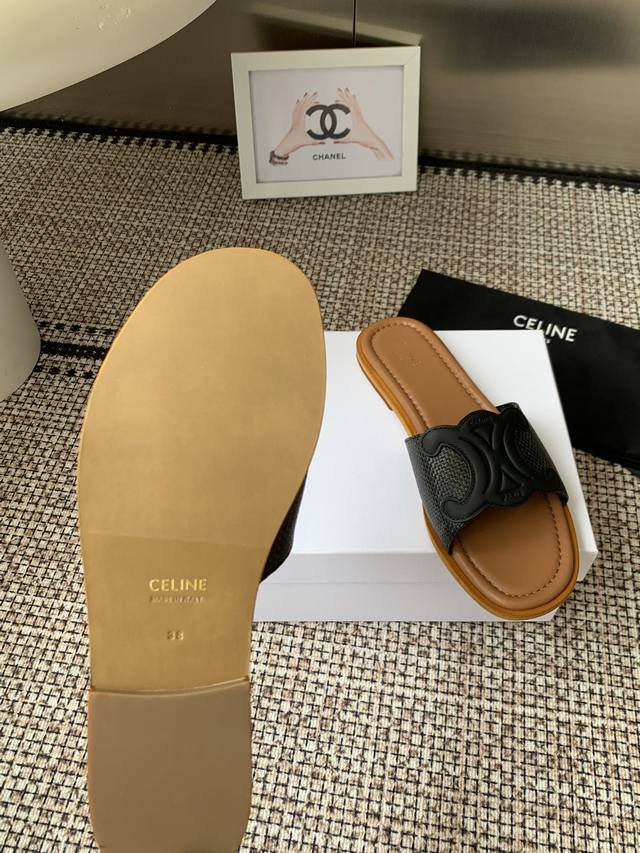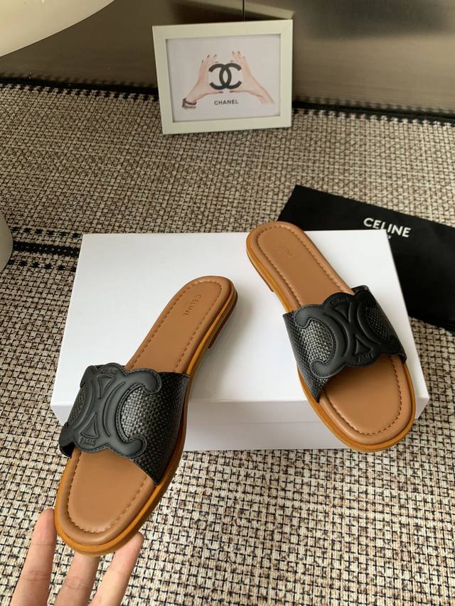 出厂:120 celine 赛琳2023专柜 顶级专柜 专柜上新 独家首发 赛琳·凯旋门 平底拖 明星同款 Ins纯净穿搭推荐 原版开模 代购版本...