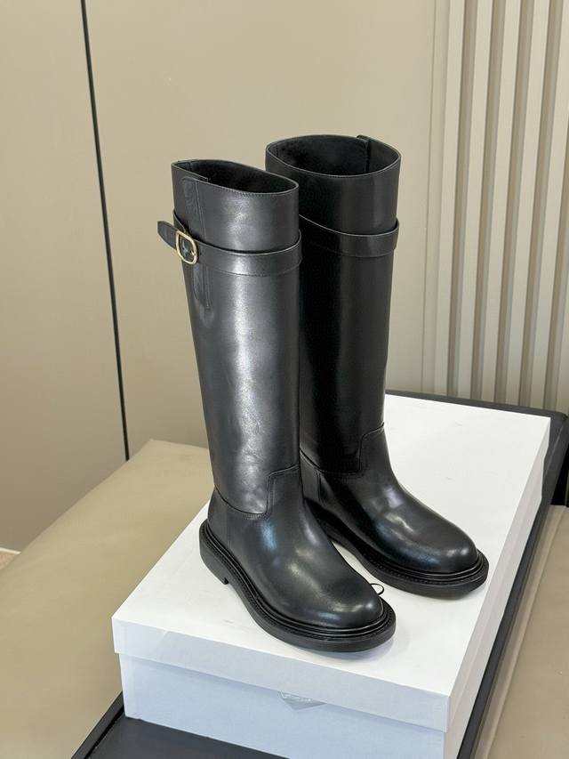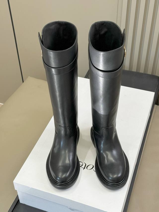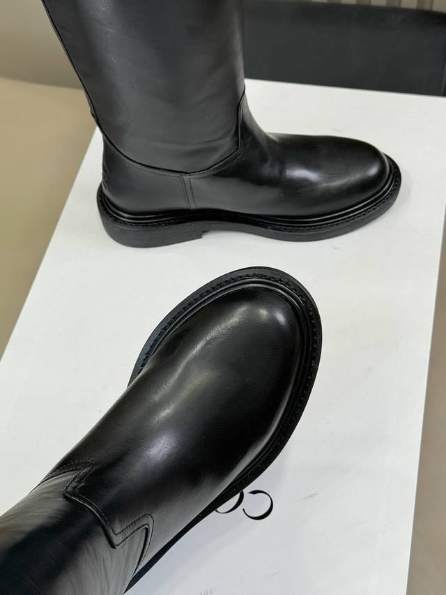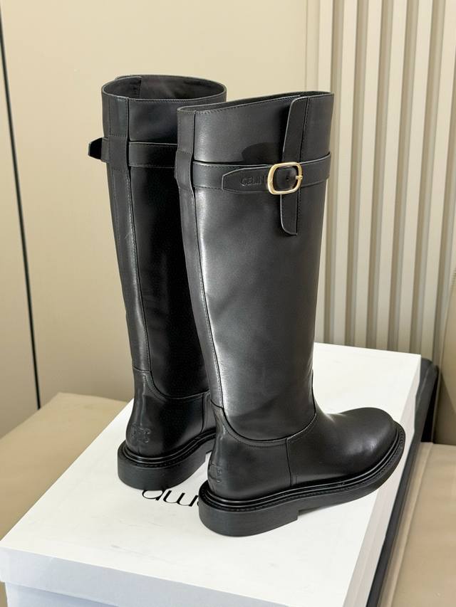 Celine 秋冬凯旋门长靴新品 膝下的高度,轻松驾驭的! 小粗跟很稳妥,舒适度不用担心呀!凯旋门Logo压印,简单但不乏精致感! 小牛皮鞋面,意大利进口牛皮底