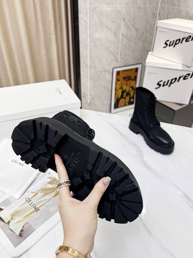 代购级 出厂 Celine塞琳 24 A秋冬新款骑士靴 凯旋门英伦风短靴简约大气时髦 耐看不过时...
