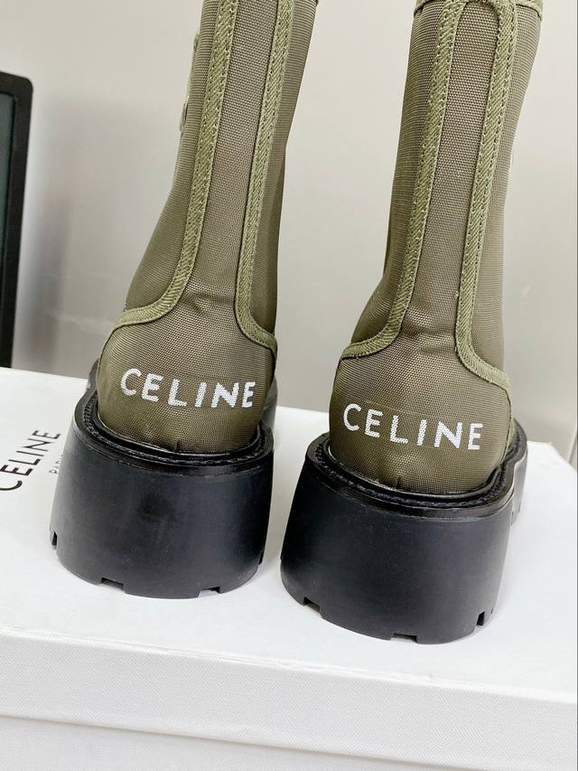 Celine 绑带靴,Celine现在的酷勾风拿捏的到位啊超帅气的一双靴子,对于小个子来说又增高又显腿细的鞋都是好鞋哈哈 这双是尼龙布料所以对比其他靴子来说轻一