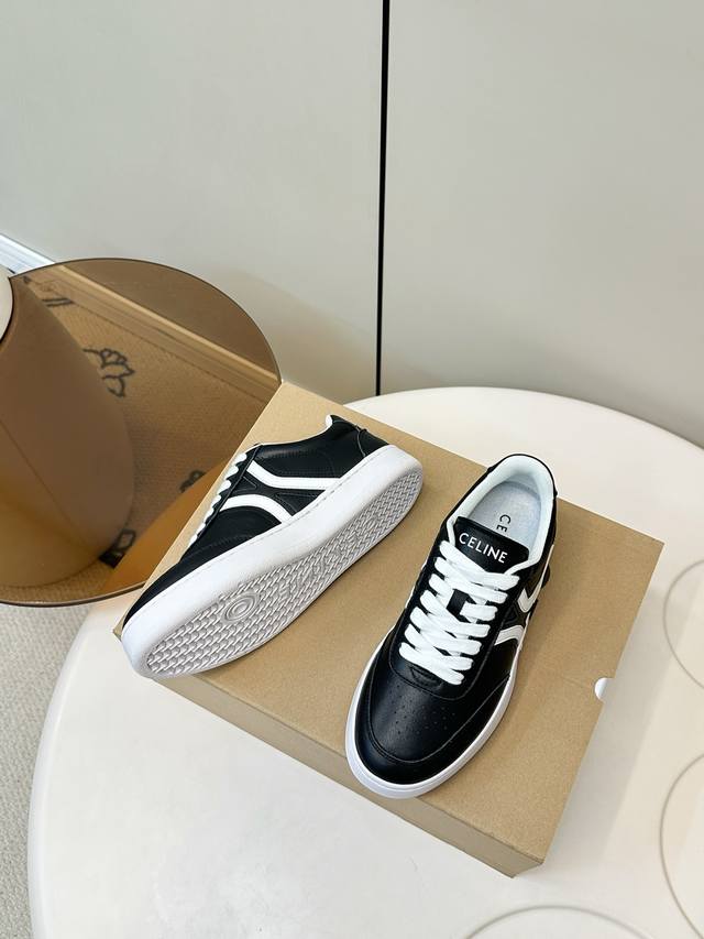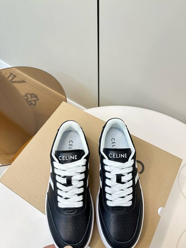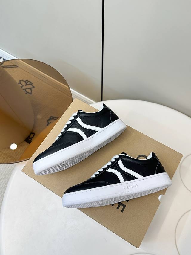 celine 赛林 25新品休闲时尚小白鞋薄底 厚底 这一季运动小白鞋无论从楦型的轮廓隔板的拼接都让人耳目一新、前后品牌Logo相呼应、大底边位明显Celine