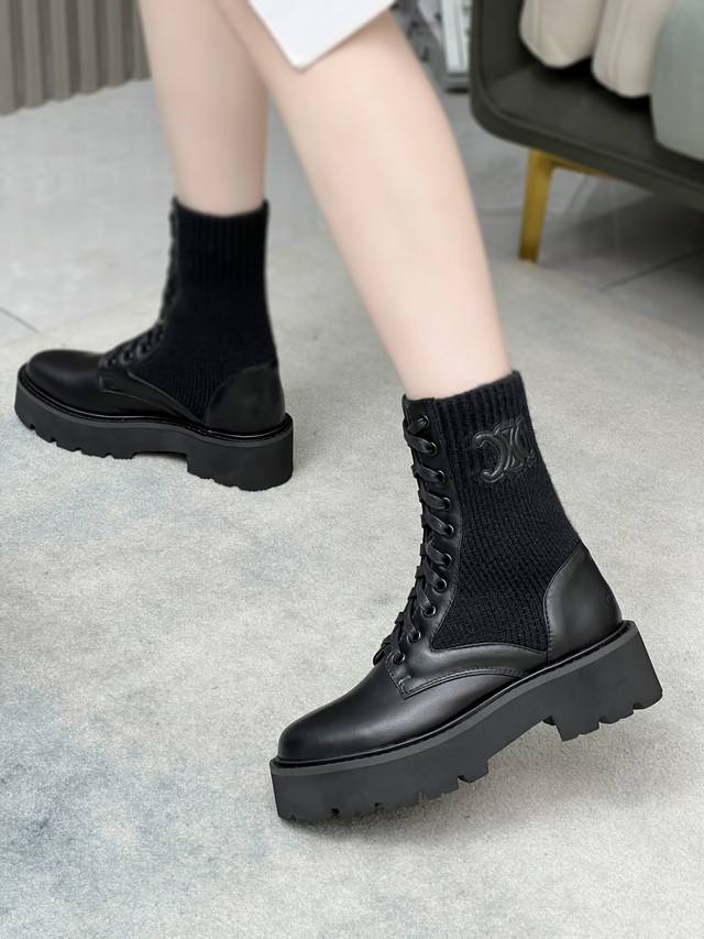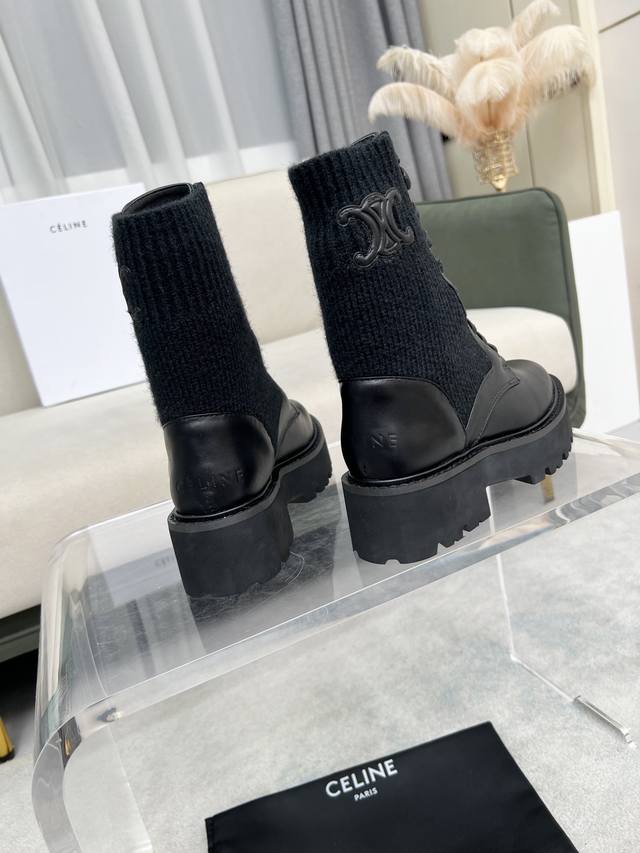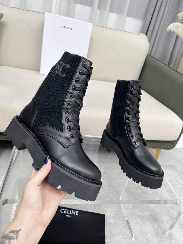 celine 赛琳 凯旋门接拼厚底针织毛线筒女瘦靴!!面料头层牛皮、内里羊、定制发炮大底!标准码数35 40 41、42订做不退放