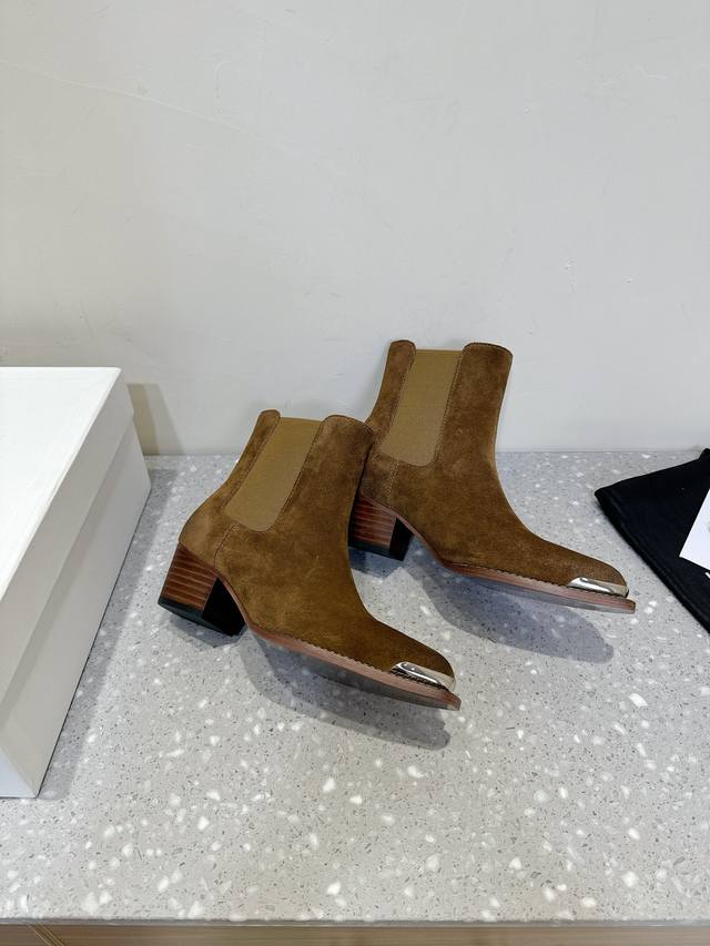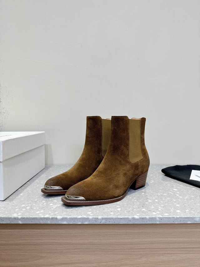 Celine 赛琳 24Ss秋冬新品 复古粗跟 切尔西 尖头 铁扣短靴