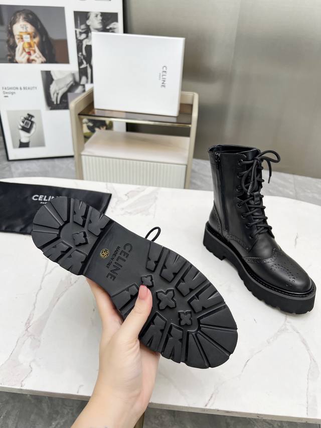 celine 赛琳2005凯旋门马丁系带厚底平底粗跟粗靴!!面料头层牛皮、内里羊、标准码数35 40 41、42订做不退放