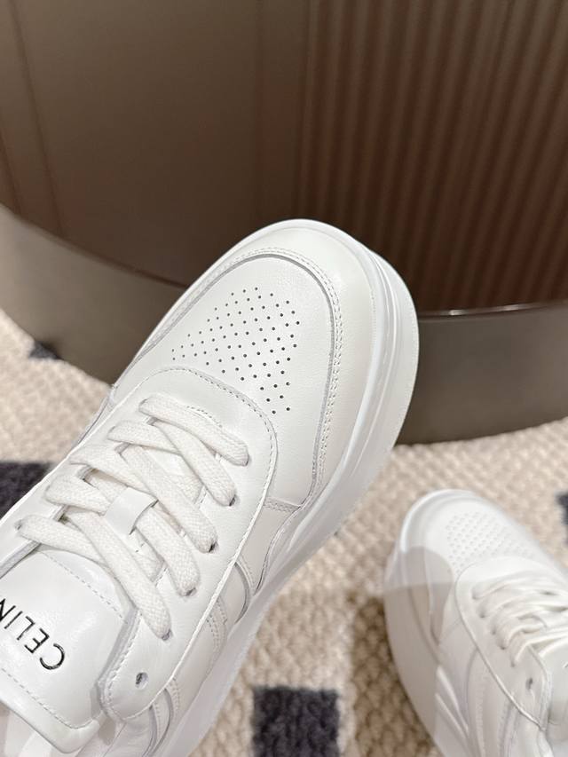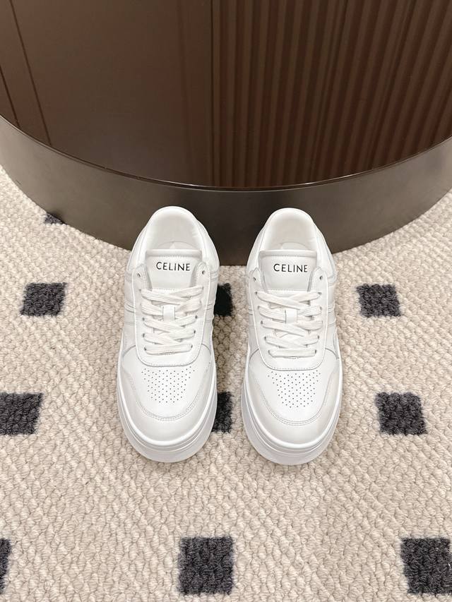 celine 赛琳~~2025春夏季新款厚底小白鞋!Celine轻奢风格的小白鞋 简单舒服 干净 !!可爱的圆头设计~~复古的感觉~~特别好看 这一季走秀款也是