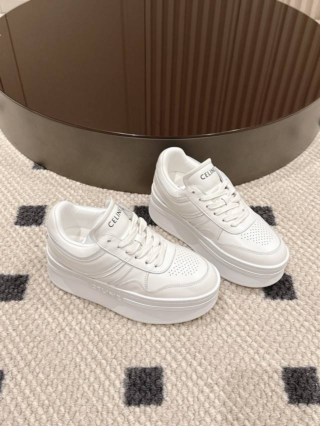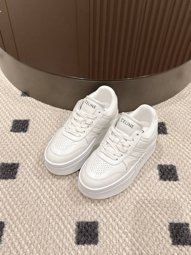 celine 赛琳~~2025春夏季新款厚底小白鞋!Celine轻奢风格的小白鞋 简单舒服 干净 !!可爱的圆头设计~~复古的感觉~~特别好看 这一季走秀款也是Isa 同款!自带增高效果,上脚非常舒服增高 5Cm左右有多拉长比例显腿细就不用多说啦,百搭的厚底小白鞋真很难不动心!