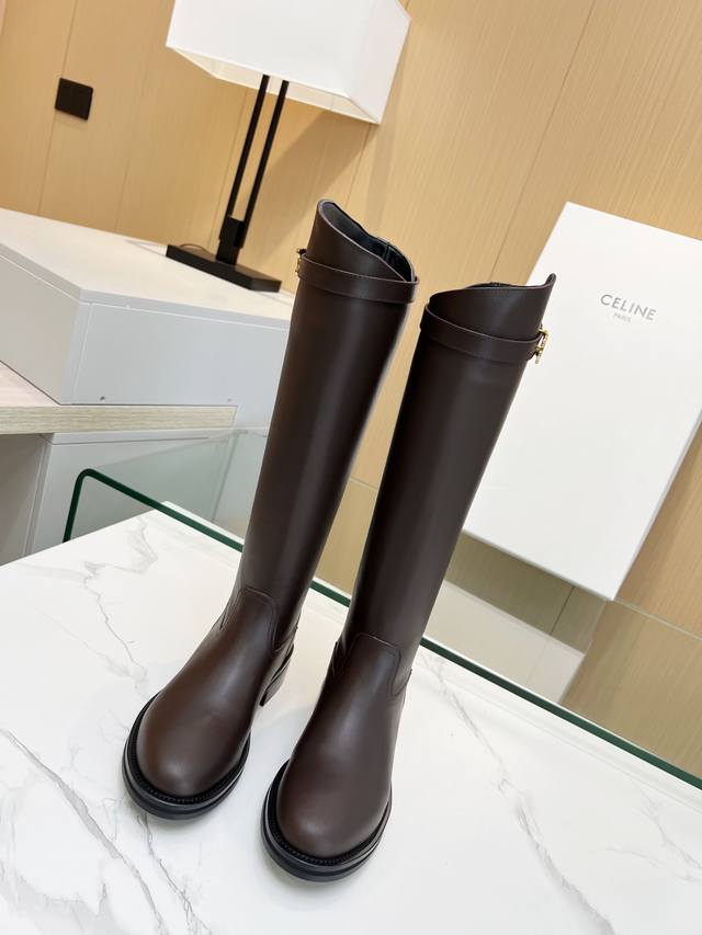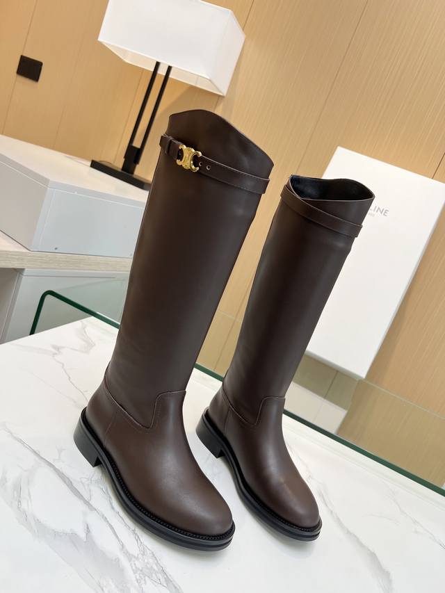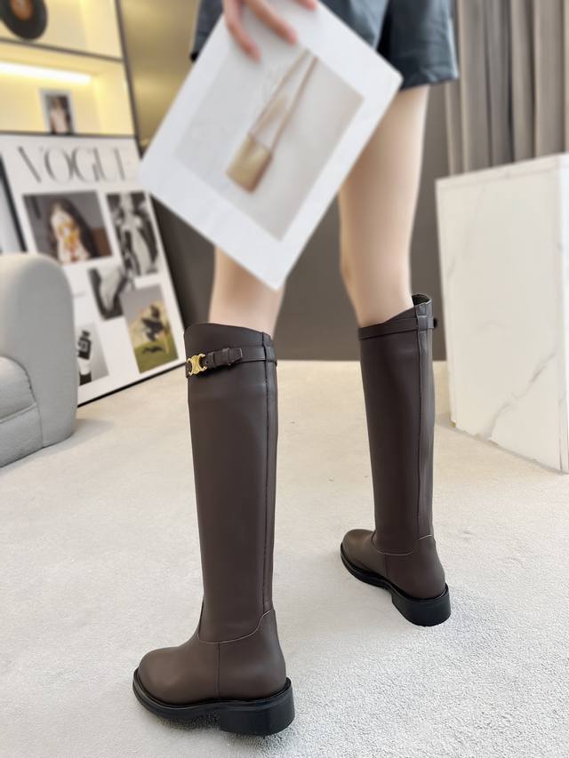 工厂p价 女装女鞋 运动原单 23秋冬新款Celine凯旋门皮带扣长筒靴,真皮骑士靴,头层牛皮面,羊皮里,35-41