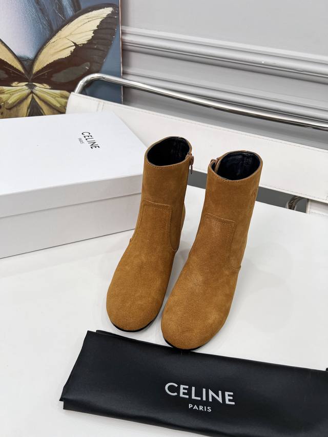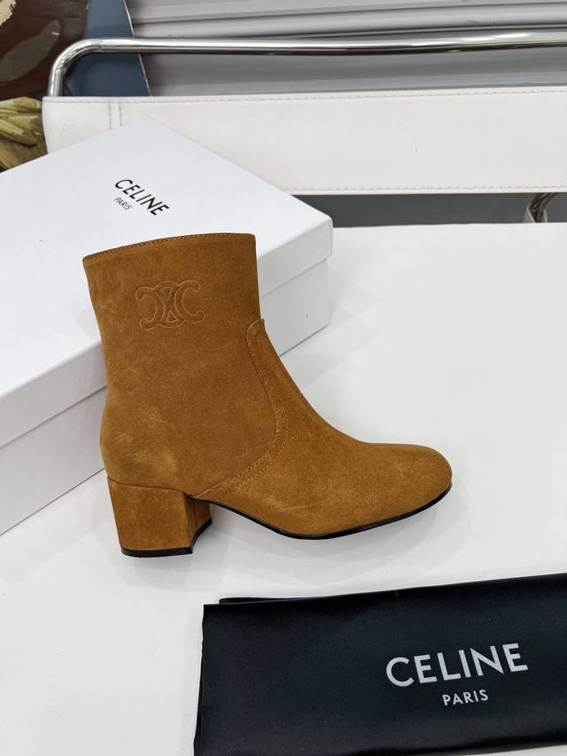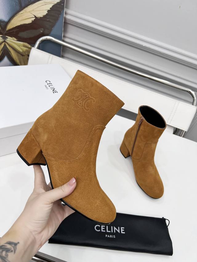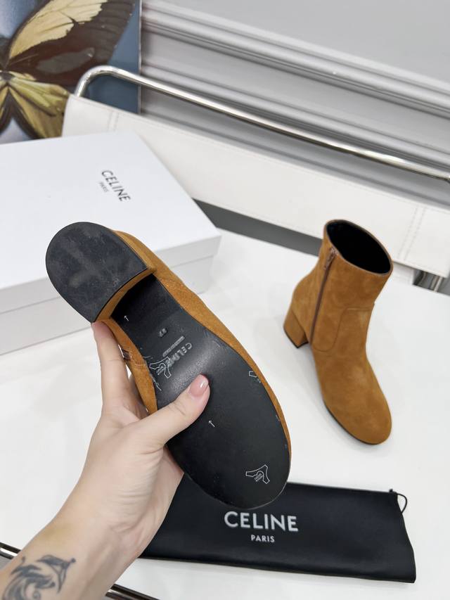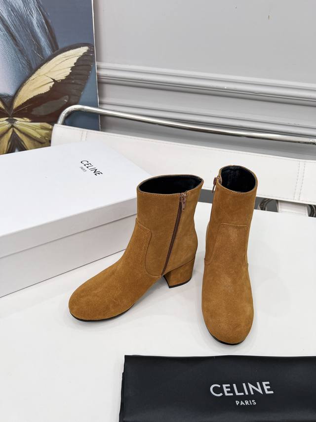工厂p价 女装女鞋 运动原单 Celine赛琳 思琳 秋冬,财阀千金,拉链小短靴,高丝光牛反绒面,羊皮里,5.5Cm粗跟,真皮大底,35-41