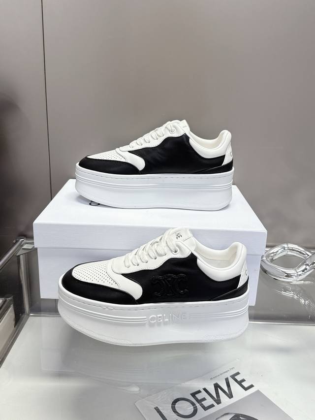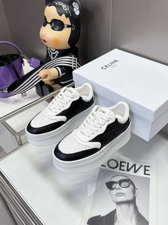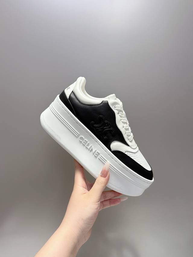工厂p价 女装女鞋 运动原单 Celine赛琳2025春夏新款凯旋门徽标系带,简单舒服,干净利落,巨显腿细,无论是单穿还是搭配阔腿裤,高街又复古一起来做Celine女孩!Celine 赛琳的这款板鞋,将精湛工艺与时尚设计完美融合,每一处细节都透露着品牌的匠心独运。如果你也在寻觅一双舒适又时尚的板鞋,不妨考虑它,相信你会爱上这份独特的魅力