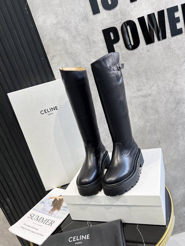工厂p价 女装女鞋 运动原单 Celine 秋冬 皮带扣长筒靴,原版复刻,水性边油油边工艺,头层牛皮面,头层水染牛皮里,垫脚,35-41