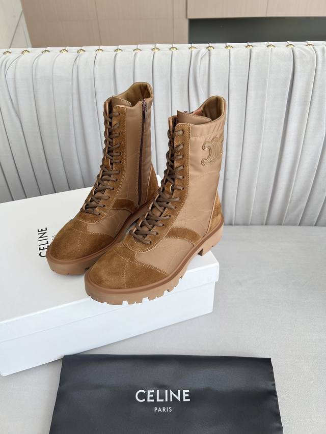 工厂p价 女装女鞋 运动原单 Celinel赛琳 原版复刻2025秋冬秀新款 复古系带厚底中短靴马丁靴,厚底增高百搭又酷又飒 35-41