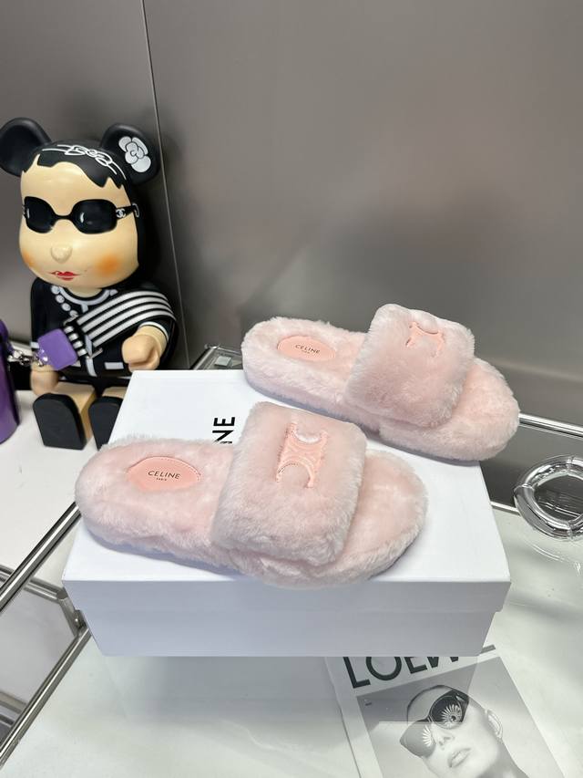 Celine 塞琳这一季的赛琳毛拖又让我重新爱了它一次!这季节美鞋太多这款毛拖真的是让我无法自拔真太可爱了~毛茸茸的羊毛是选用欧洲进口 A级羊毛全部采用纯羊毛一点人造毛的成分都没有!初冬外穿毛拖鞋,时尚又百搭能不爱?毛茸茸的拖鞋,一直是秋冬爆款单品真的闭眼搭配不会出错的单品搭长裤搭短裤 搭大衣搭羽绒服 穿都能搭配!超级百搭,不允许还没有人不入!