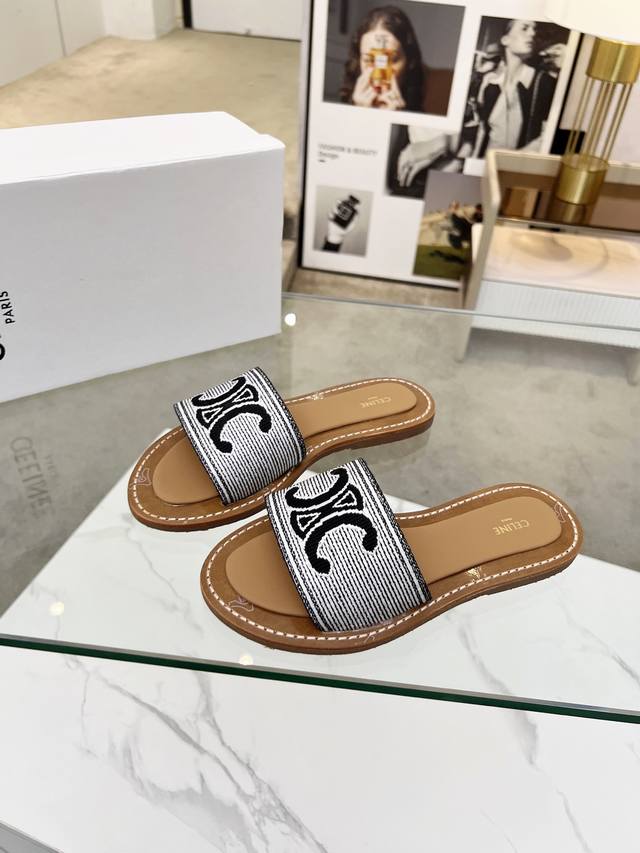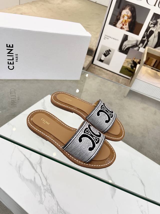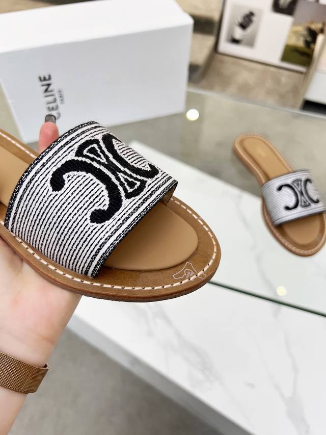 Celine 赛琳 2025春夏新品拖鞋鞋面采用原版刺绣工艺,大底原版上层真皮底下层生胶组合,质感非凡上脚超级好看 码数35-42 41.42定做不退换