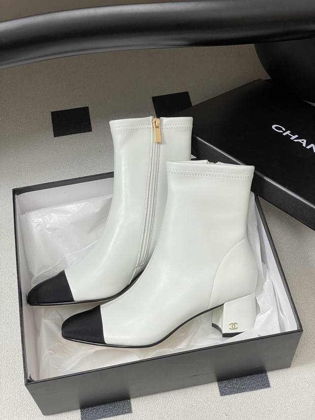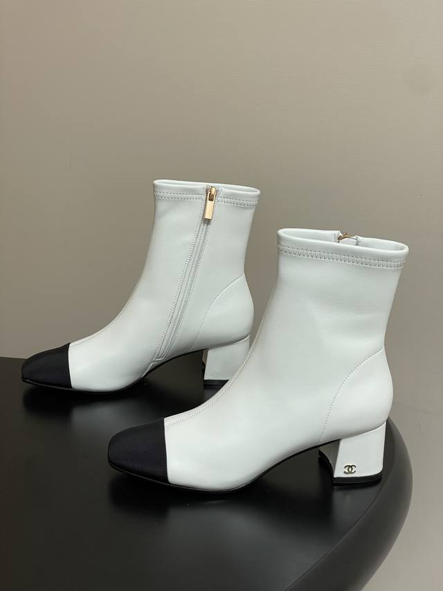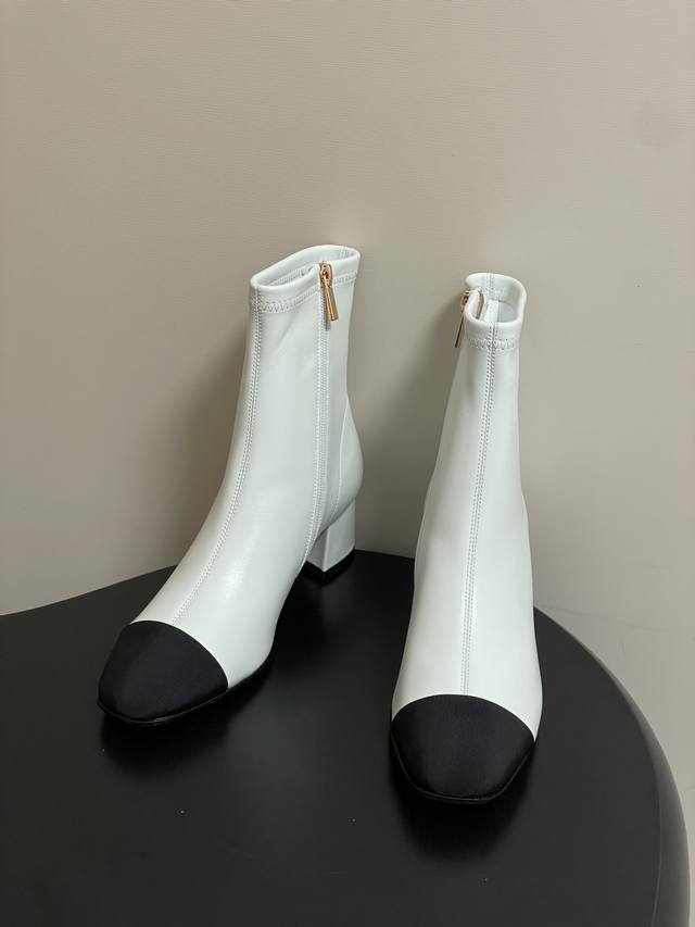 万年经典款 Chanel 小香经典方头侧拉链弹力短靴粗跟及踝靴