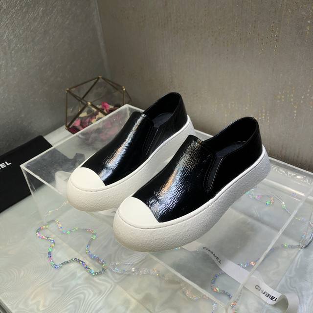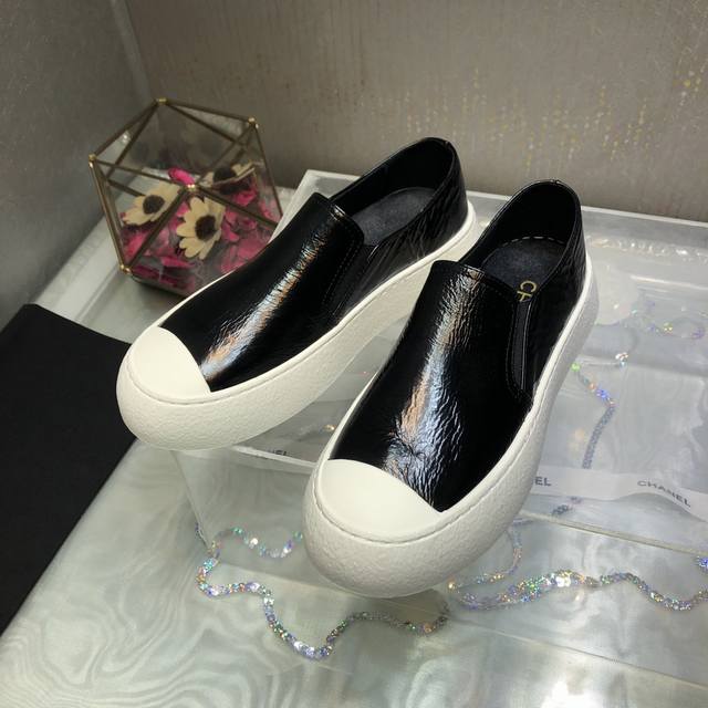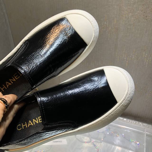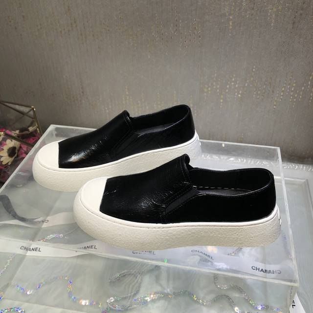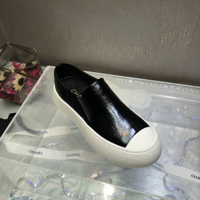 原版购入开发做货 鞋酷帅呆萌的鞋头加上立体浮雕双C Logo 太爱了,皱牛漆的搭配令人眼前一亮 高级感扑面而来 平底设计 异常舒适 日常搭配 出街 扮酷必备神器