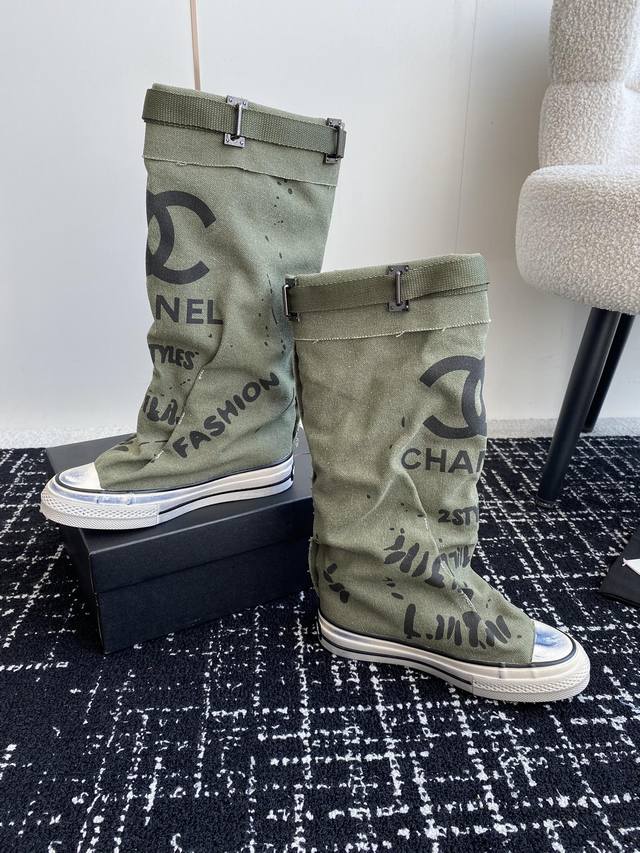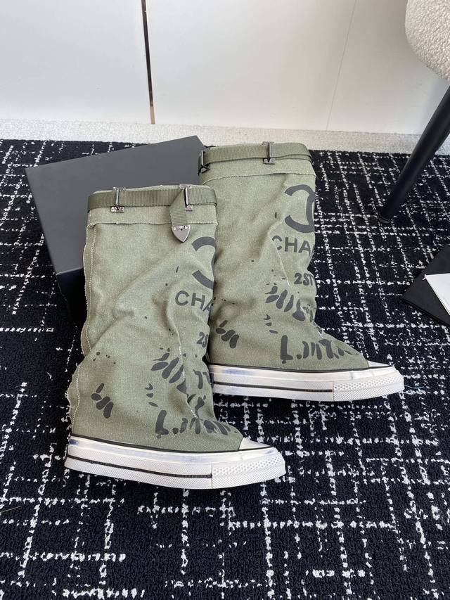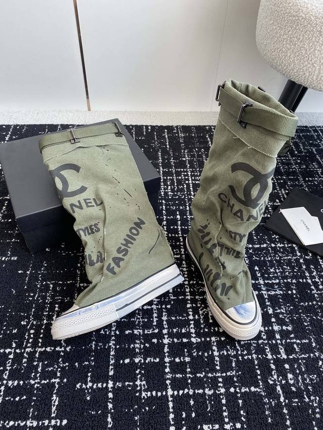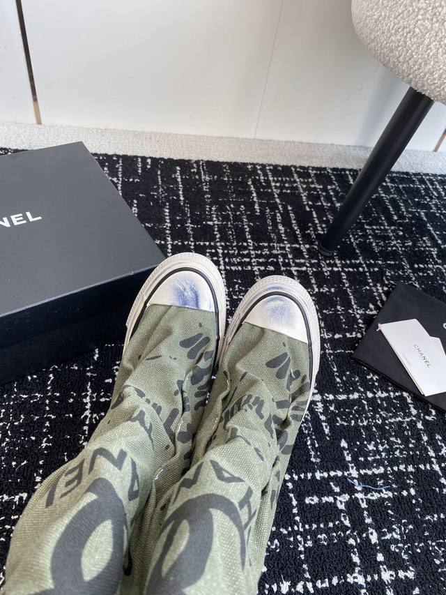 Chanel 香奈儿 网红爆款中古 涂鸦帆布鞋 太有范儿了 复古coco女鞋