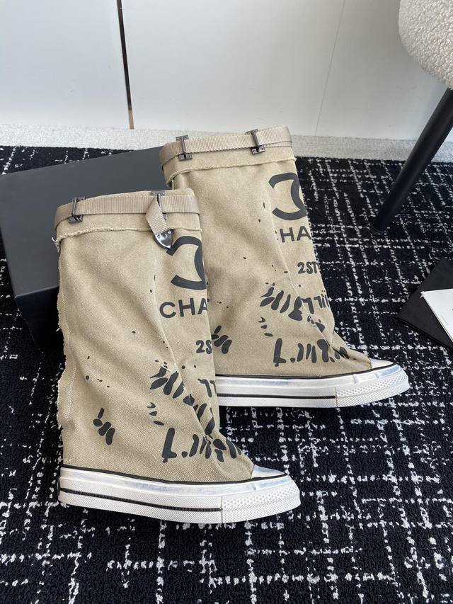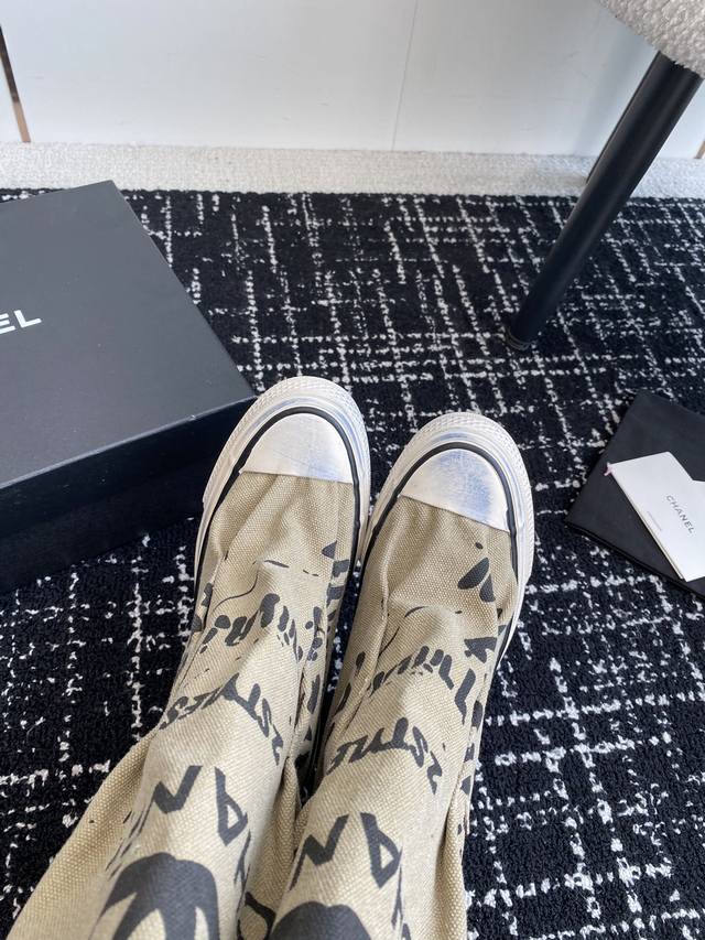 Chanel 香奈儿 网红爆款中古 涂鸦帆布鞋 太有范儿了 复古coco女鞋