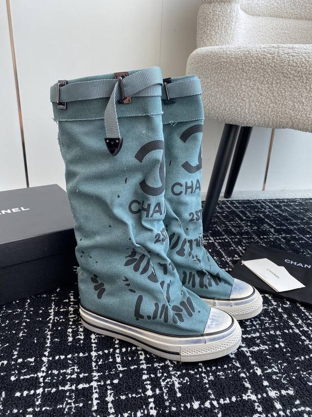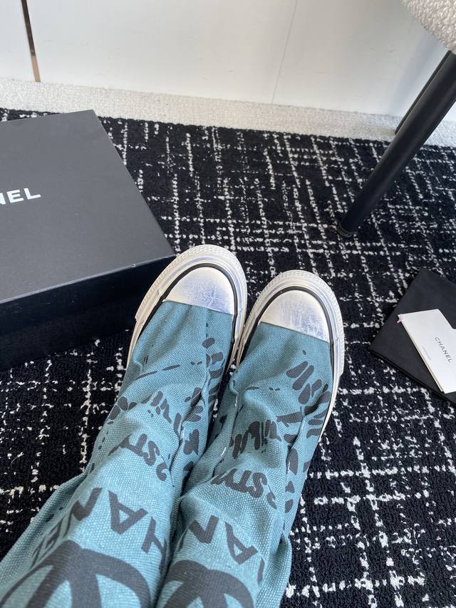 Chanel 香奈儿 网红爆款中古 涂鸦帆布鞋 太有范儿了 复古coco女鞋