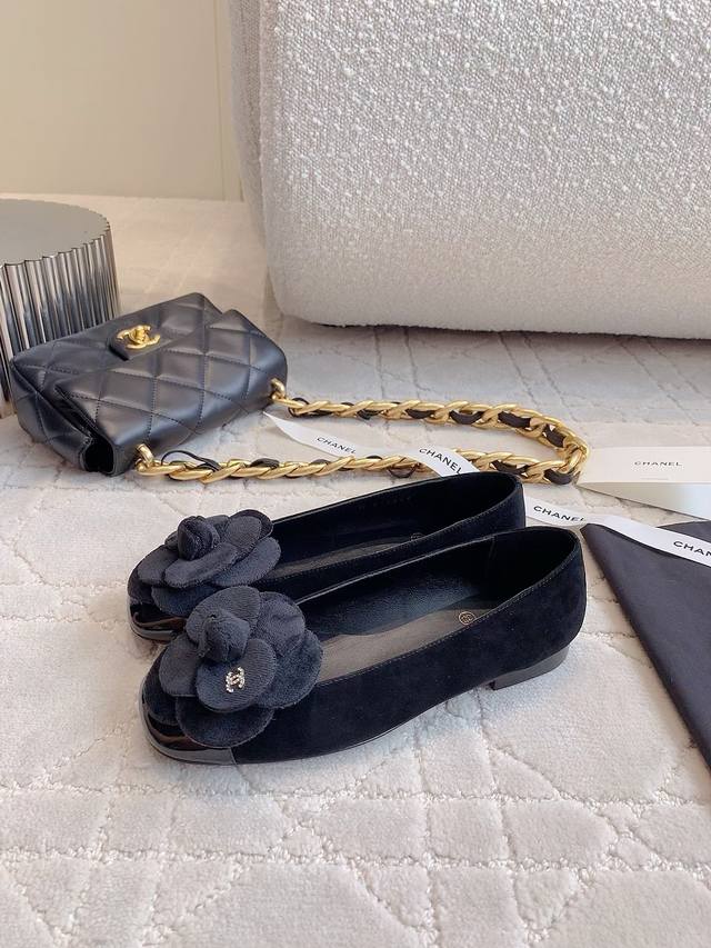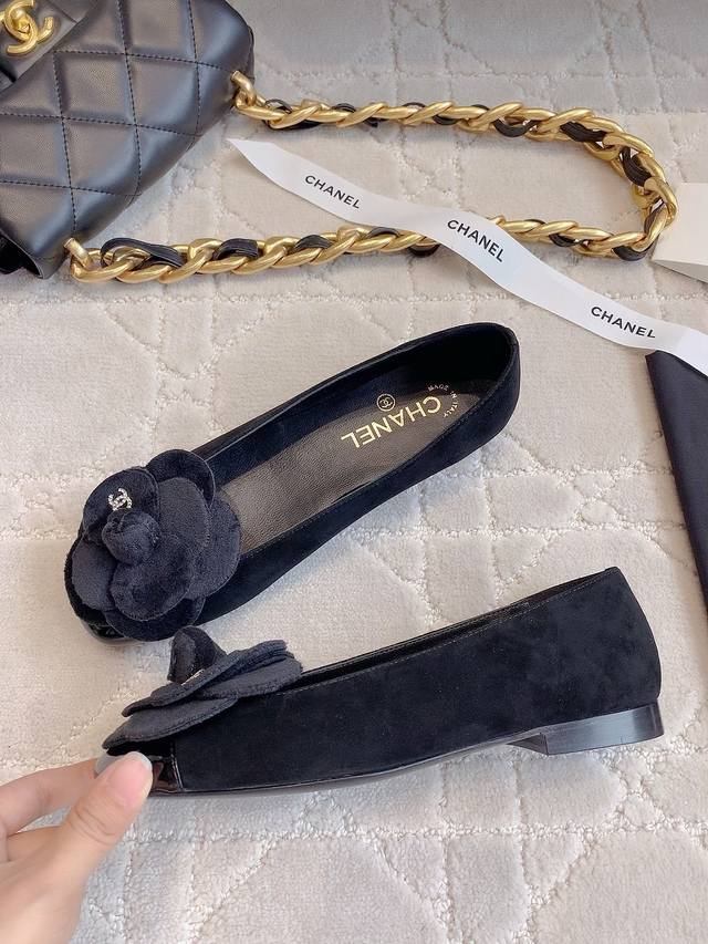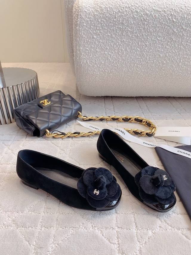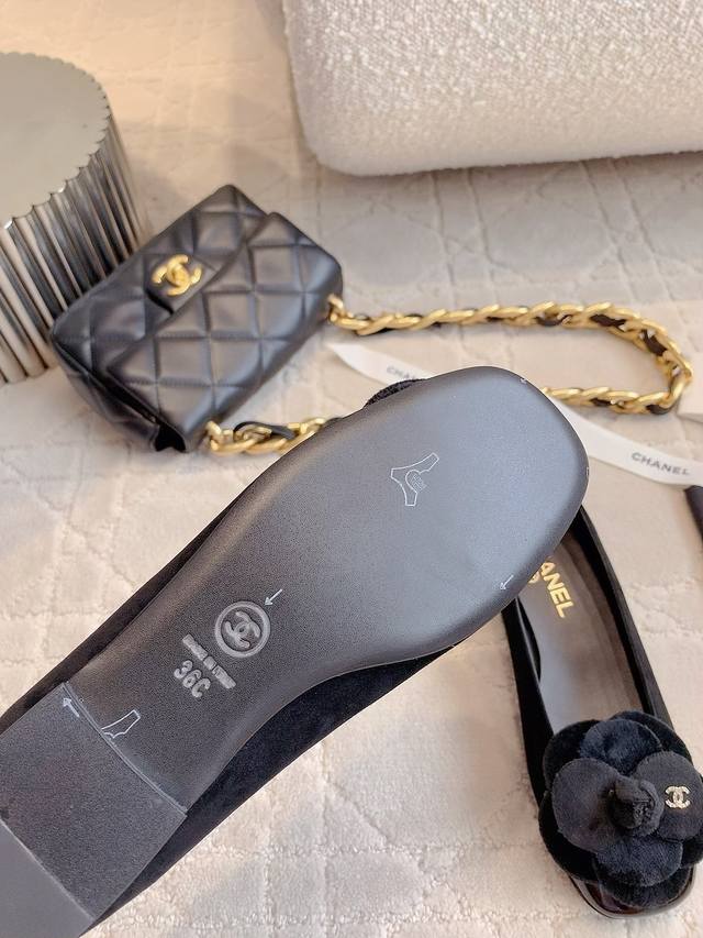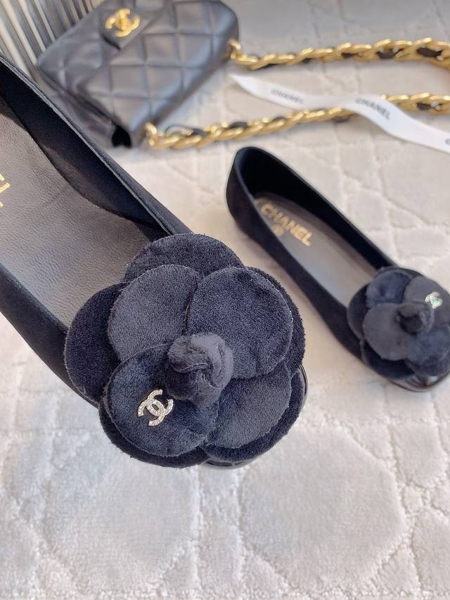 出厂价 Chane*新款山茶花平底单鞋 甜美可爱 上脚超赞 复古又时髦 鞋面牛皮 天鹅绒 羊京 内里垫脚羊皮 意大利真皮大底 尺码35-39 40 41定做