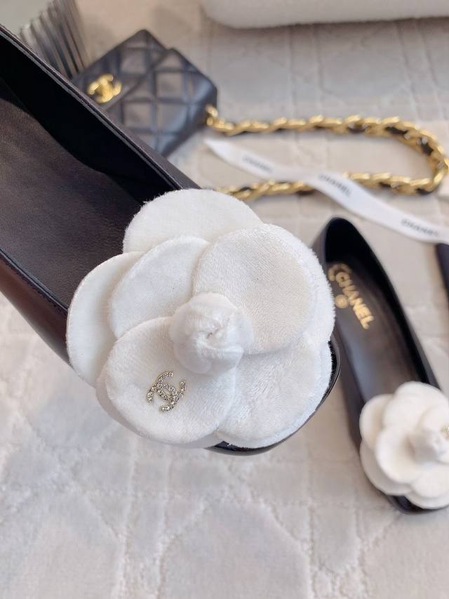 出厂价 Chane*新款山茶花平底单鞋 甜美可爱 上脚超赞 复古又时髦 鞋面牛皮 天鹅绒 羊京 内里垫脚羊皮 意大利真皮大底 尺码35-39 40 41定做