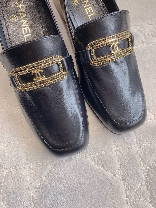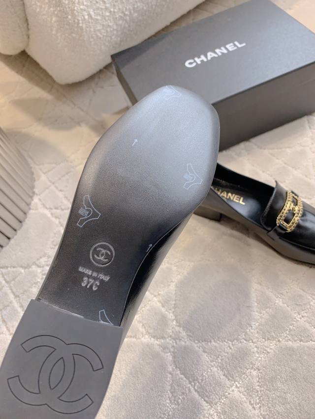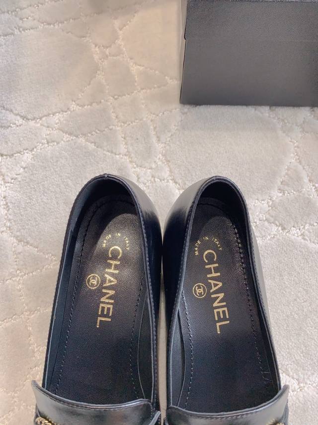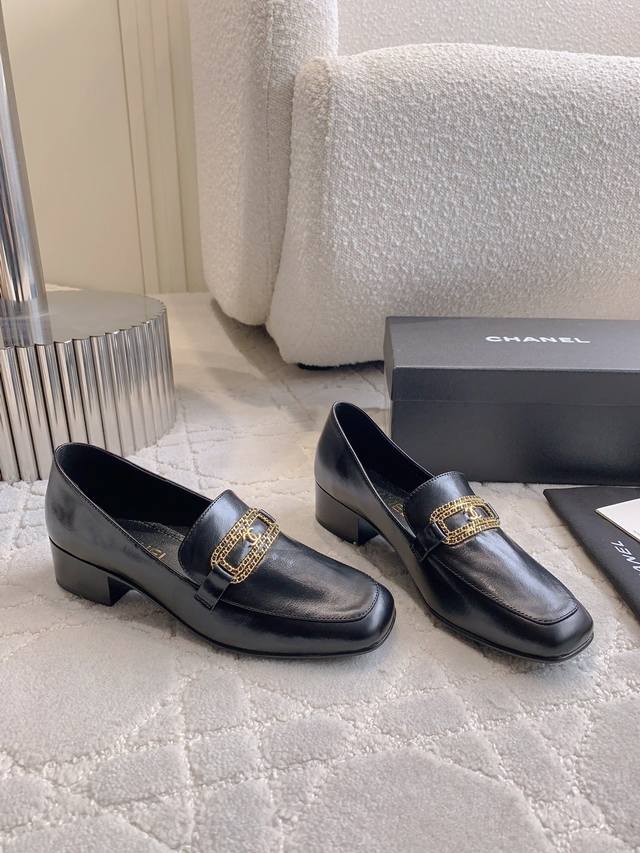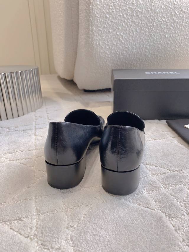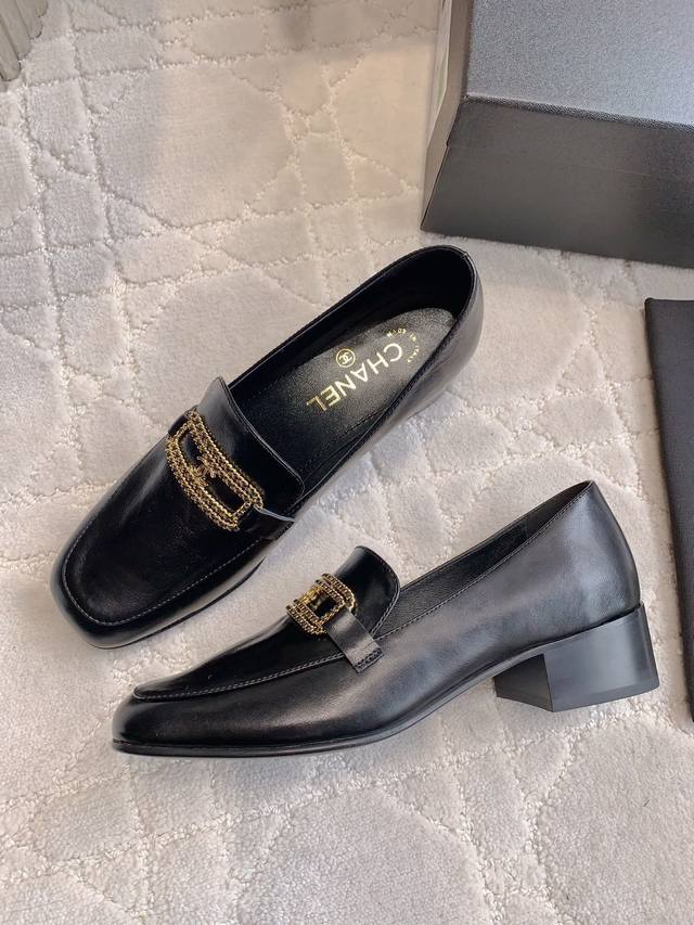Chane*新款新款粗跟乐福鞋单鞋 简约百搭款 经典logo装饰简约大气 精致的高级感 学院风百搭又减龄 各种穿搭都能驾驭