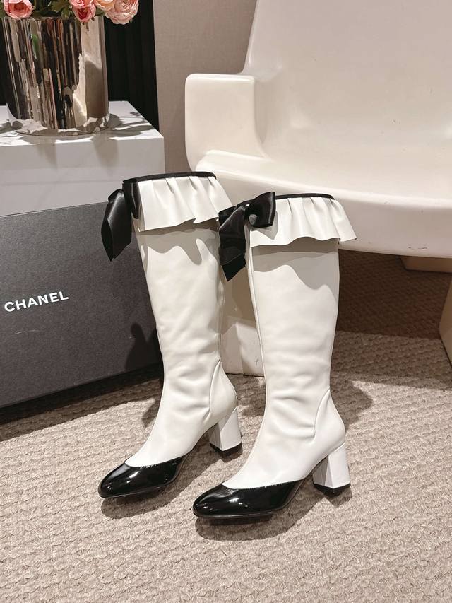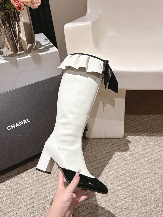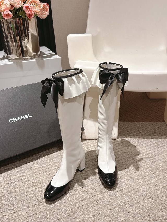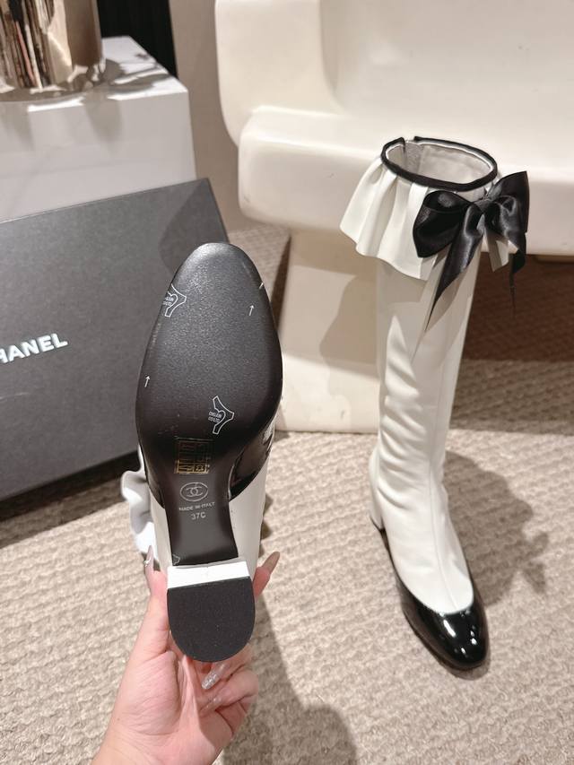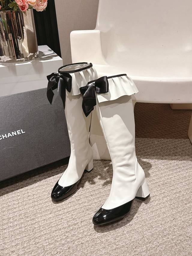 出厂价p 香奈儿 25 Ss 秋冬秀场新品 小香双C蝴蝶结褶皱弹力 长靴